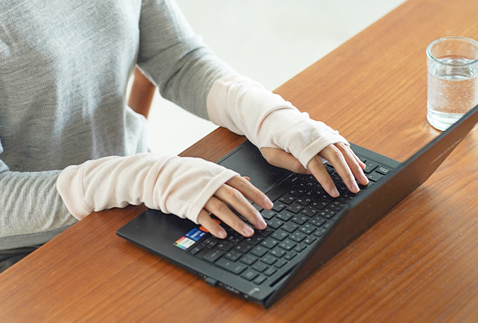 筒状のアームウォーマーなら、腕の方に手繰り寄せるだけで、手をすべて外に出して作業を行うことができます。