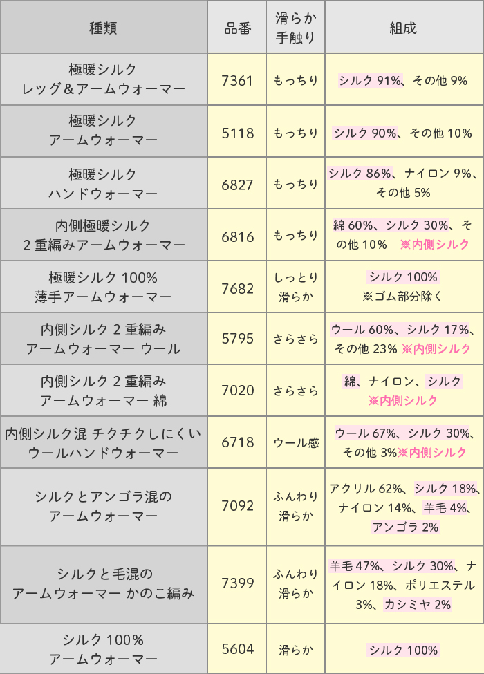 以上、絹屋の数あるアームウォーマーを、4つの観点で比較してみましたが、いかがでしたか?