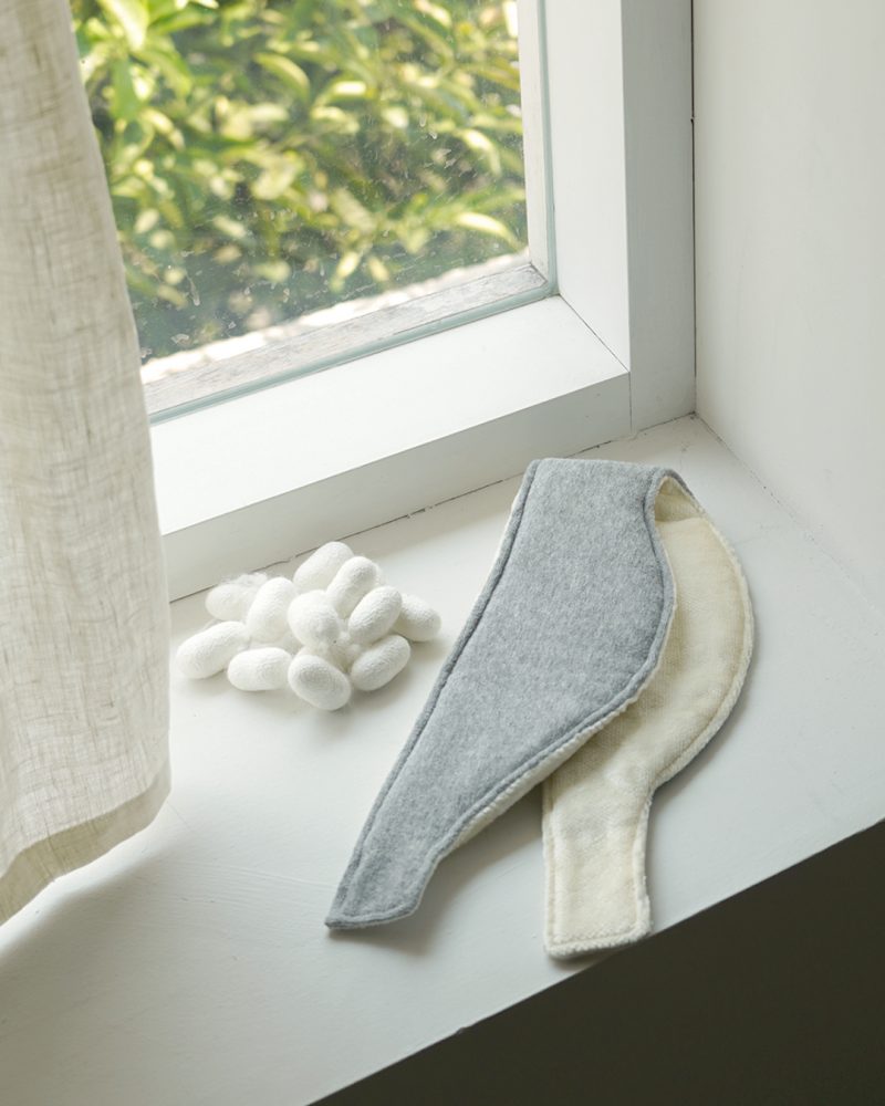 目に当てるシルクボアは和歌山県の伝統「高野口パイル」の技術でつくられ、