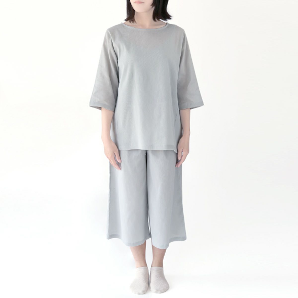 上下ともにワイドなシルエットでゆったりと着用いただけ、締め付け感がないので就寝中もストレスがありません。