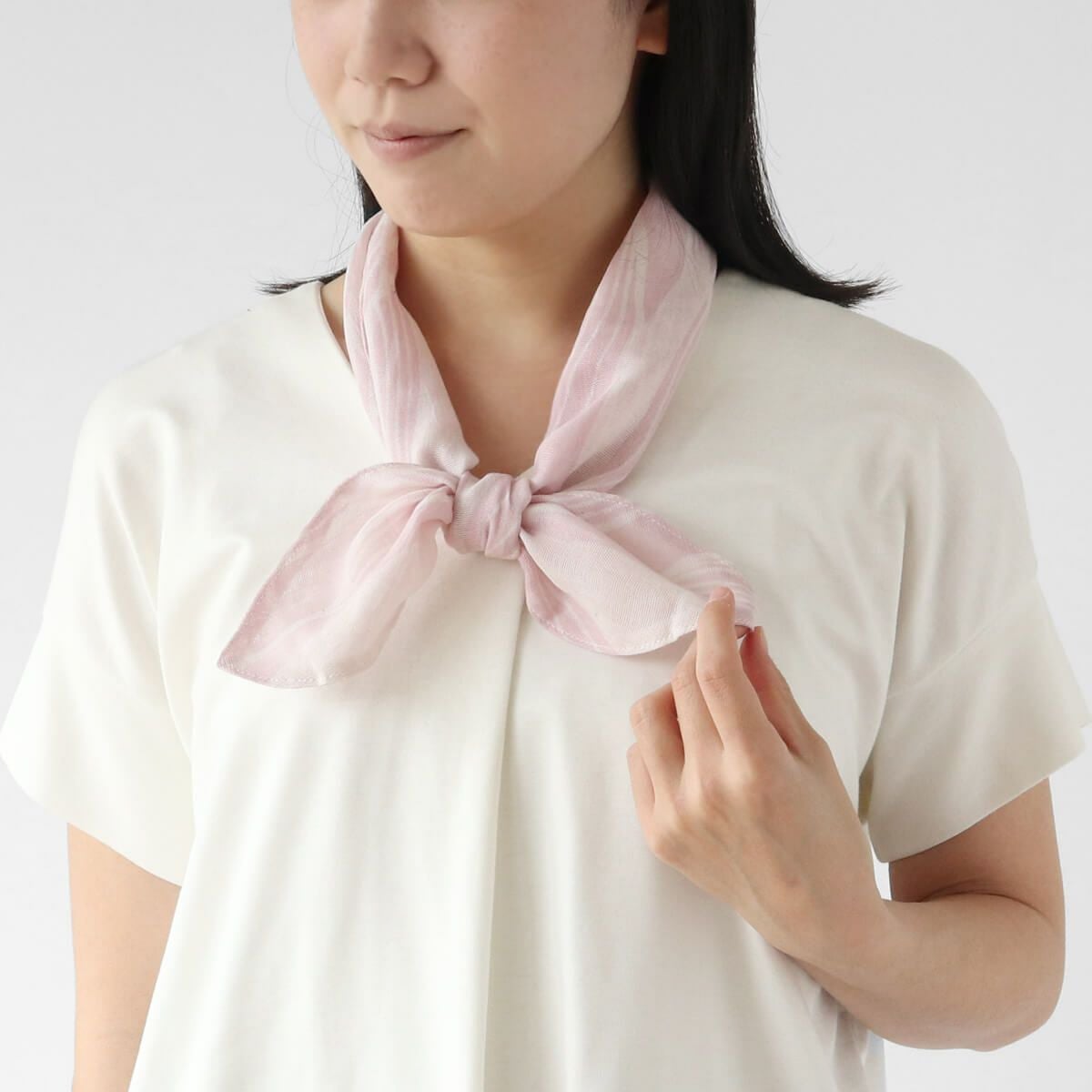 シルクと綿の吸放湿性から、汗をかいても快適な、心地良い肌触りのスカーフ。