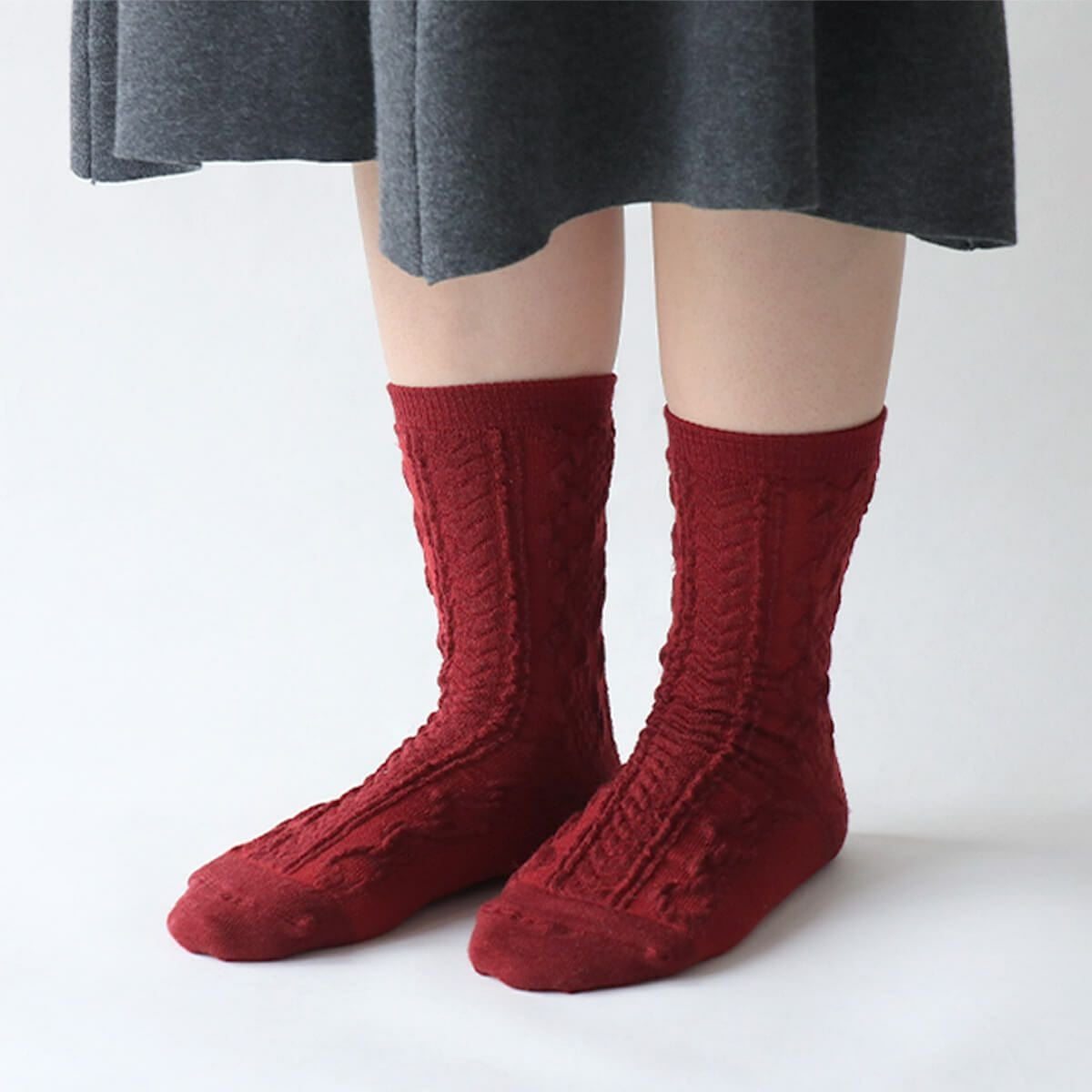 絹屋 内側シルク2重編み靴下 ウール混 編み柄