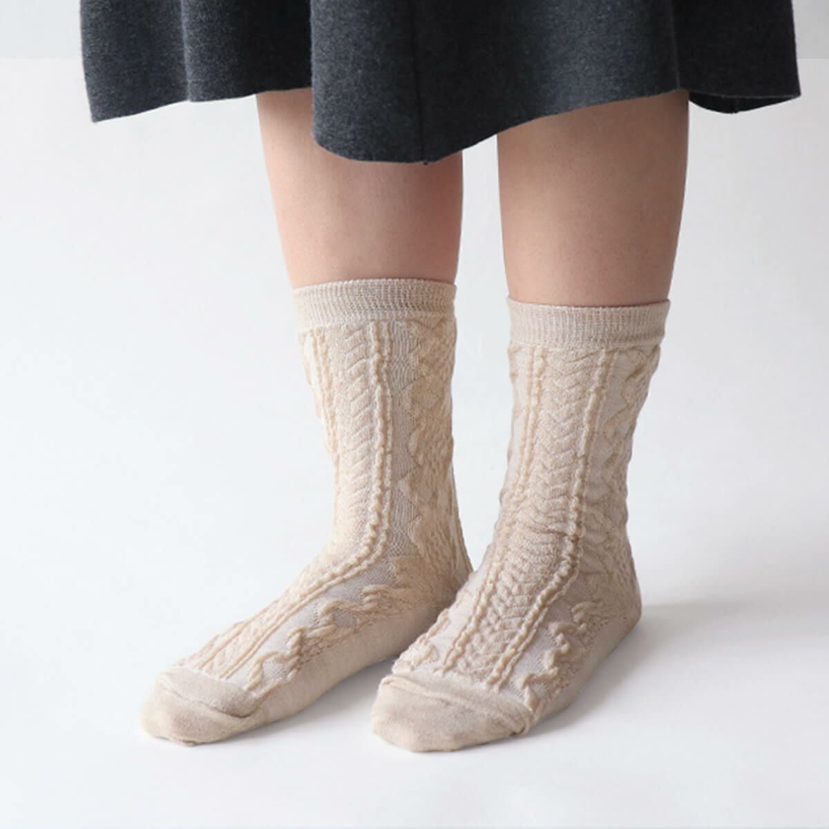 商品名 内側シルク2重編み靴下 ウール混 編み柄