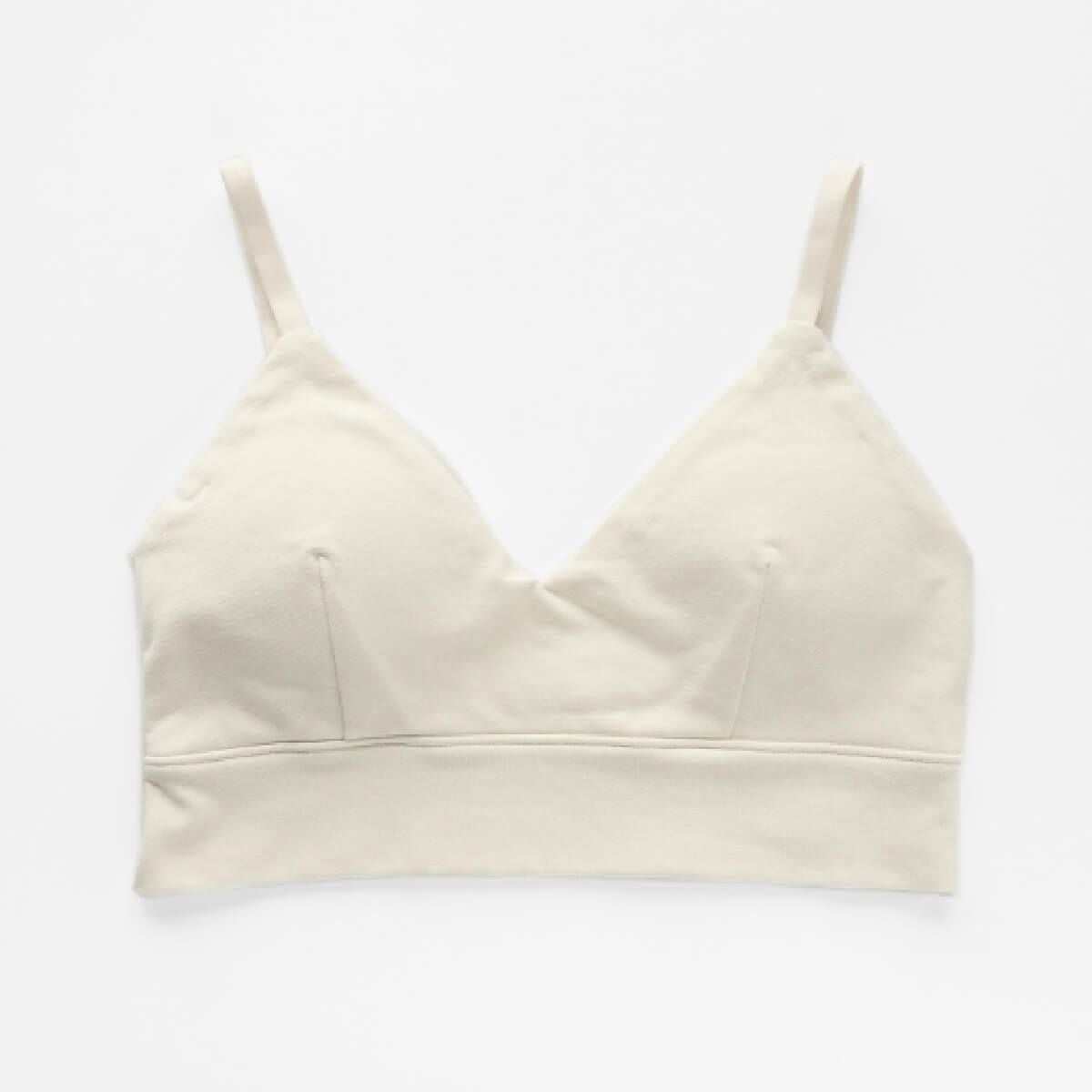 オーガニックコットンとシルクの生地を使用した、お肌に優しいインナーのリラックスブラ。 アンダー部分にはゴムを入れず締め付け感がなく 身体にストレスが掛からない、ゆったりとした作りにこだわりました。