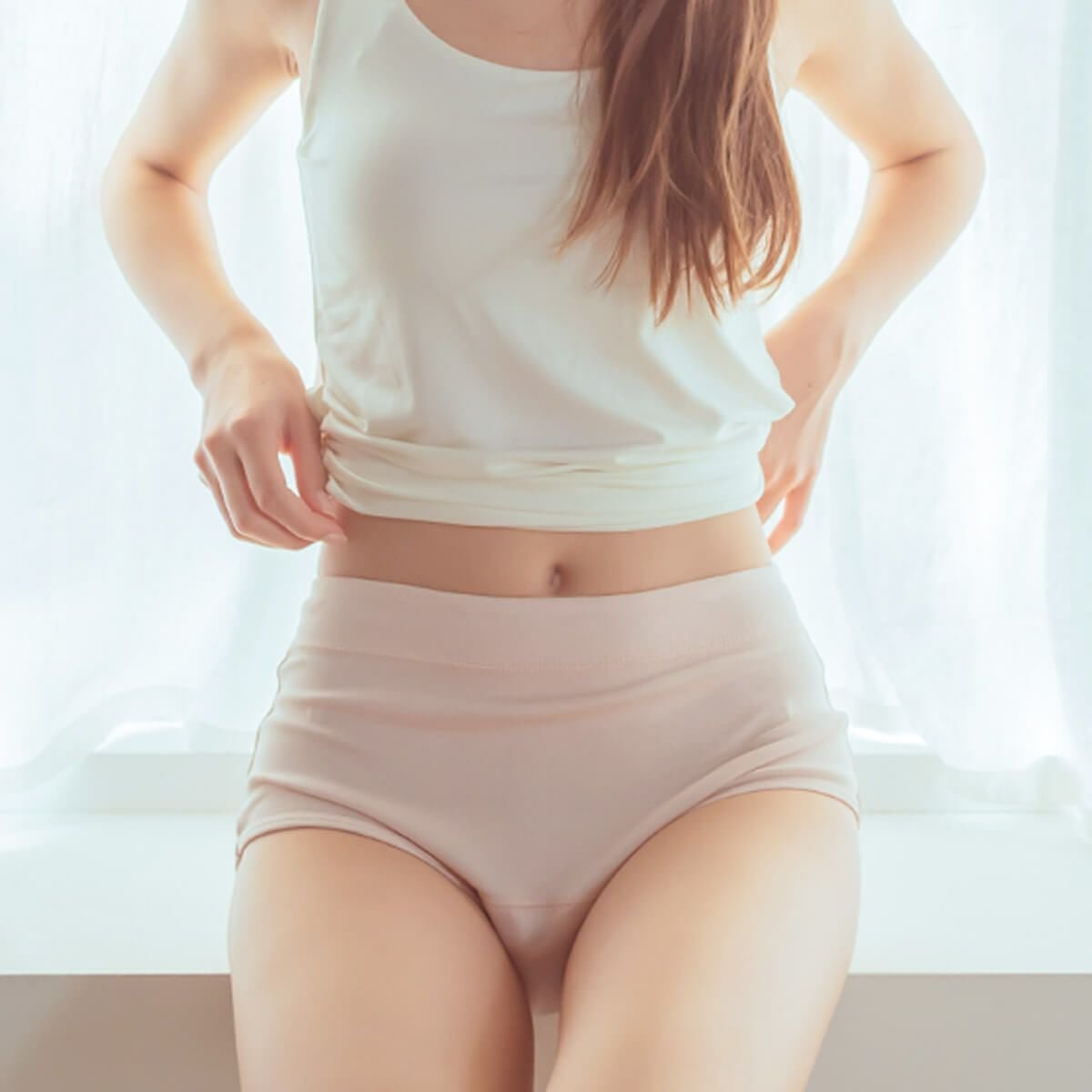 肌面にシルクの生地を使用した、お肌に優しいインナー吸水ショーツ。ウエストのゴムやショーツ本体も締め付け感がなく身体にストレスが掛からない、ゆったりとした作りにこだわりました。