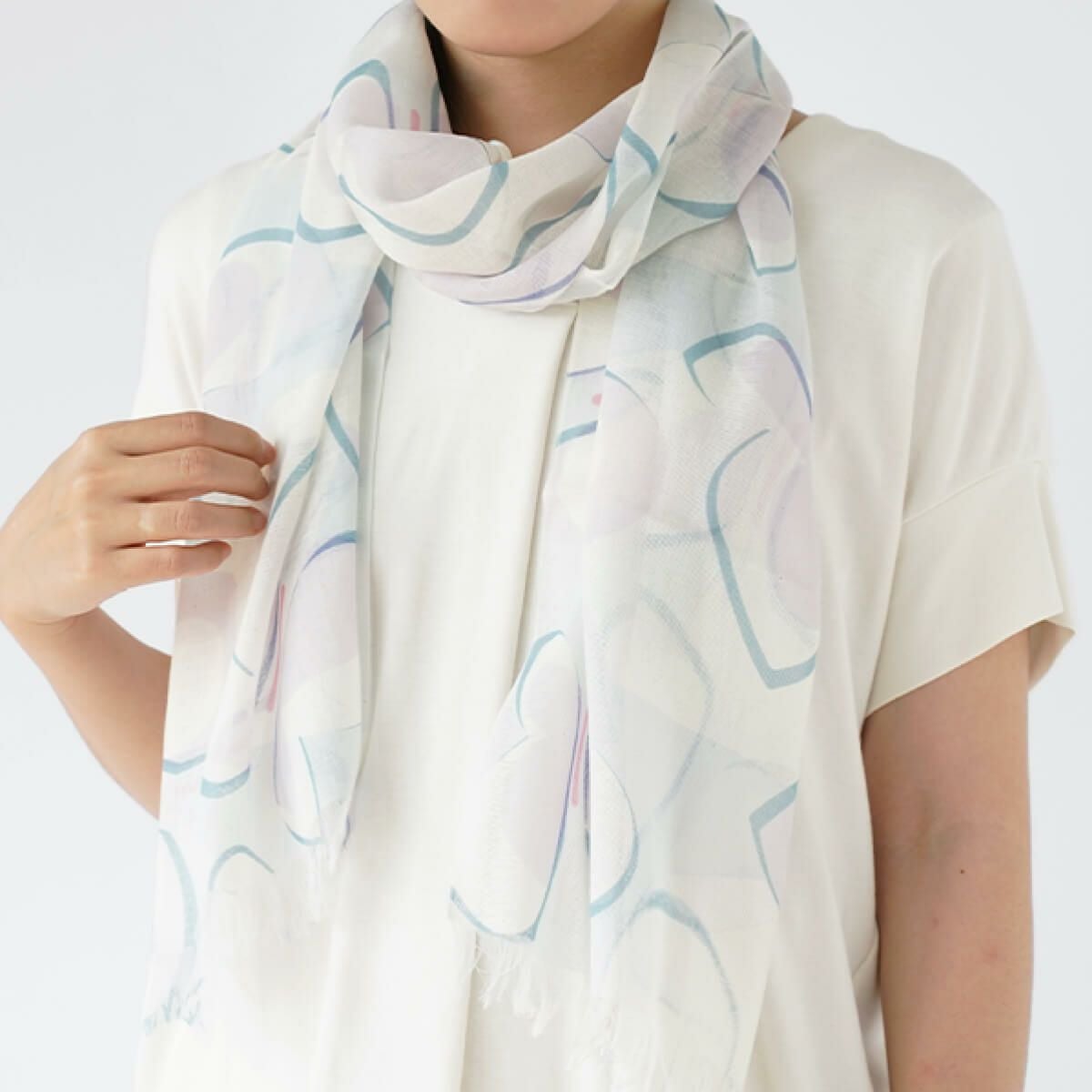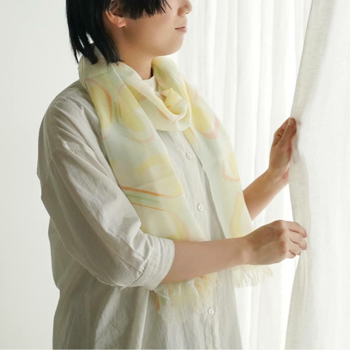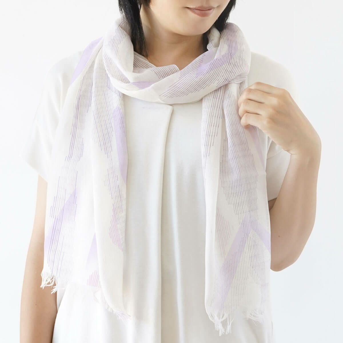 シルクと綿の吸放湿性から、汗をかいても快適な、心地良い肌触りのストール。