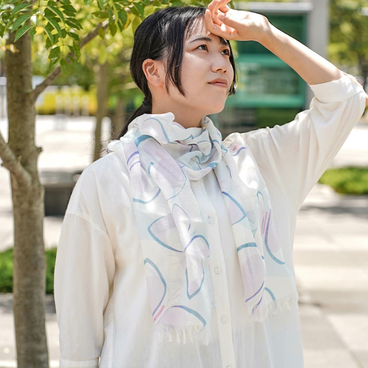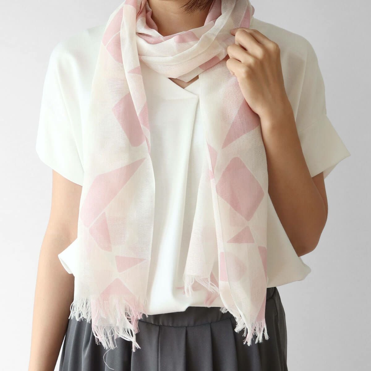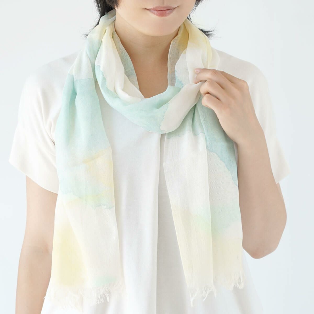 シルクと綿の吸放湿性から、汗をかいても快適な、心地良い肌触りのストール。