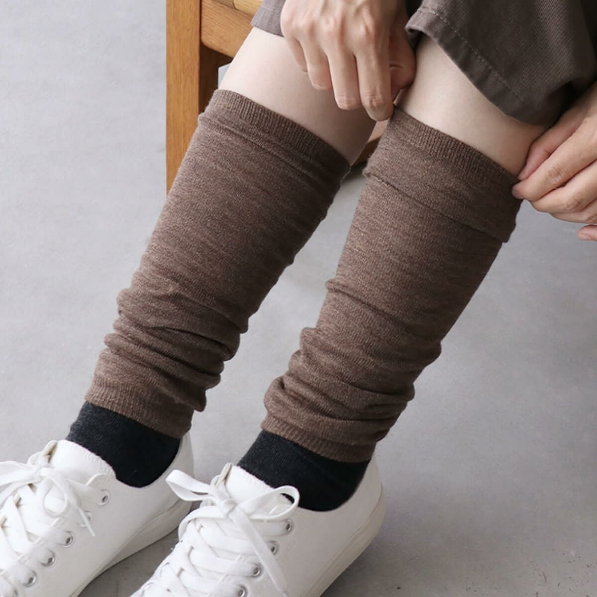 商品名 内側シルク 2重編み チクチクしにくいウールレッグウォーマー