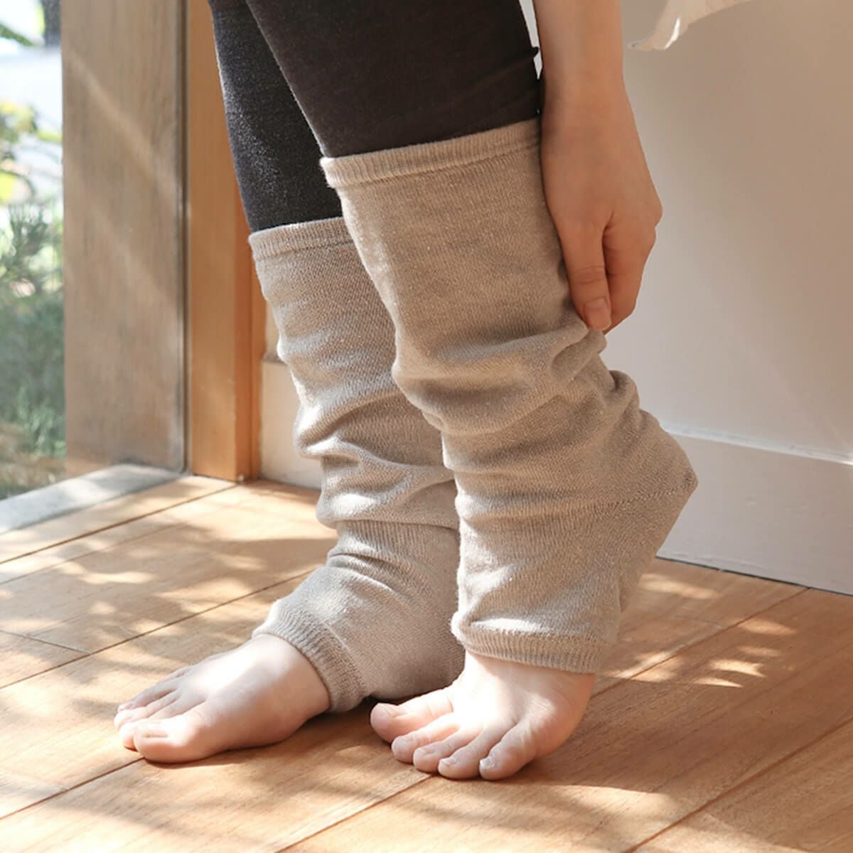 シルクと綿麻のかかと付きレッグウォーマー