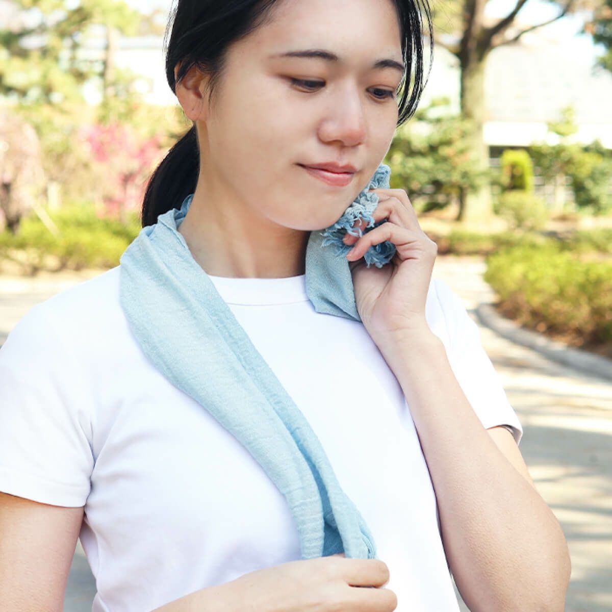 さっと首に巻くだけで、