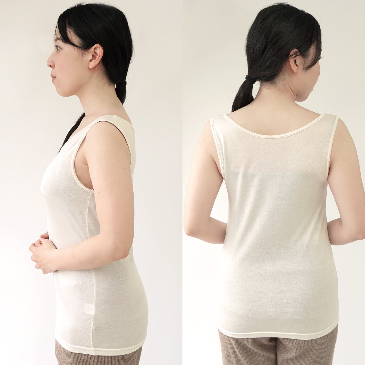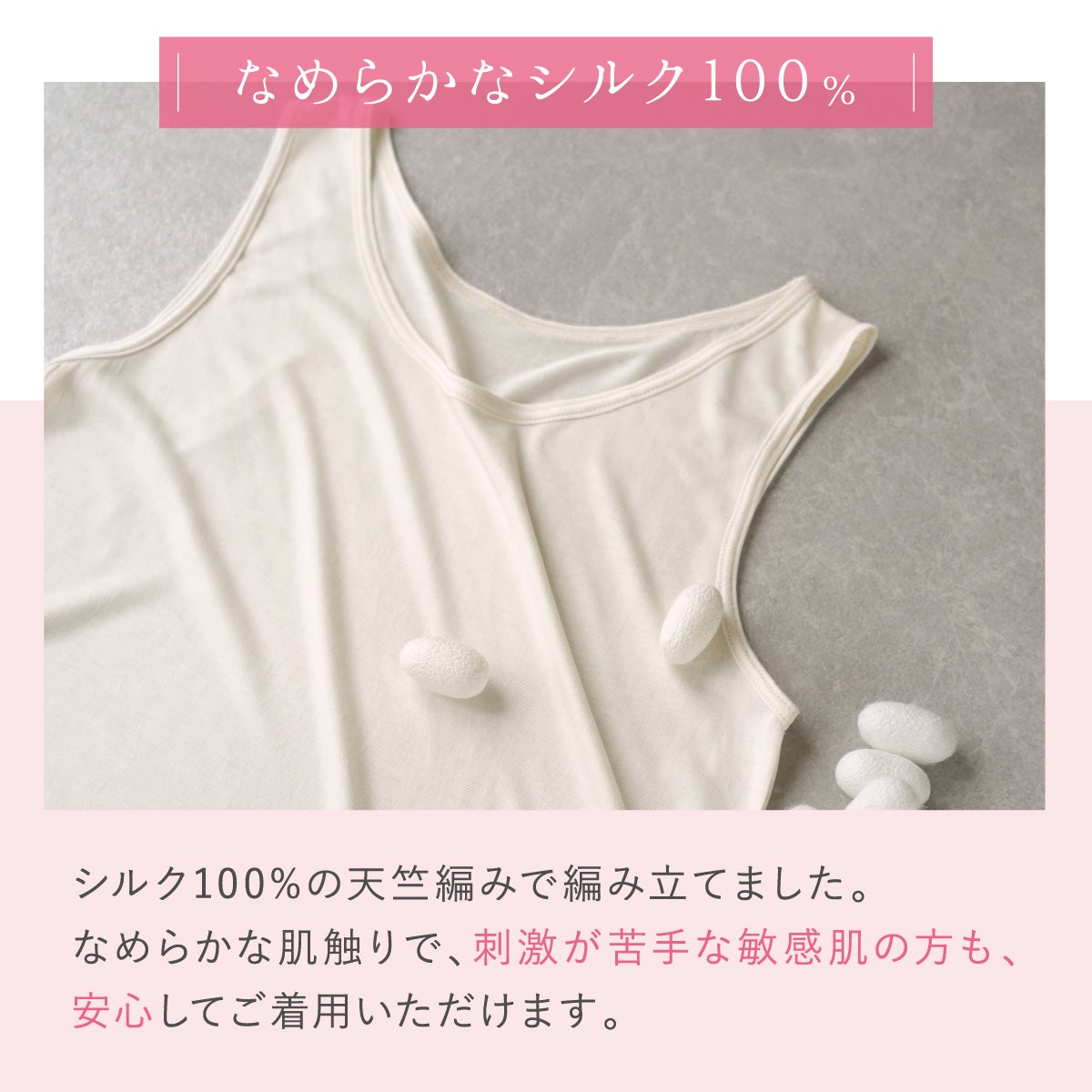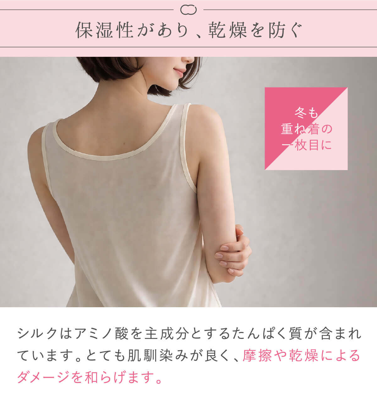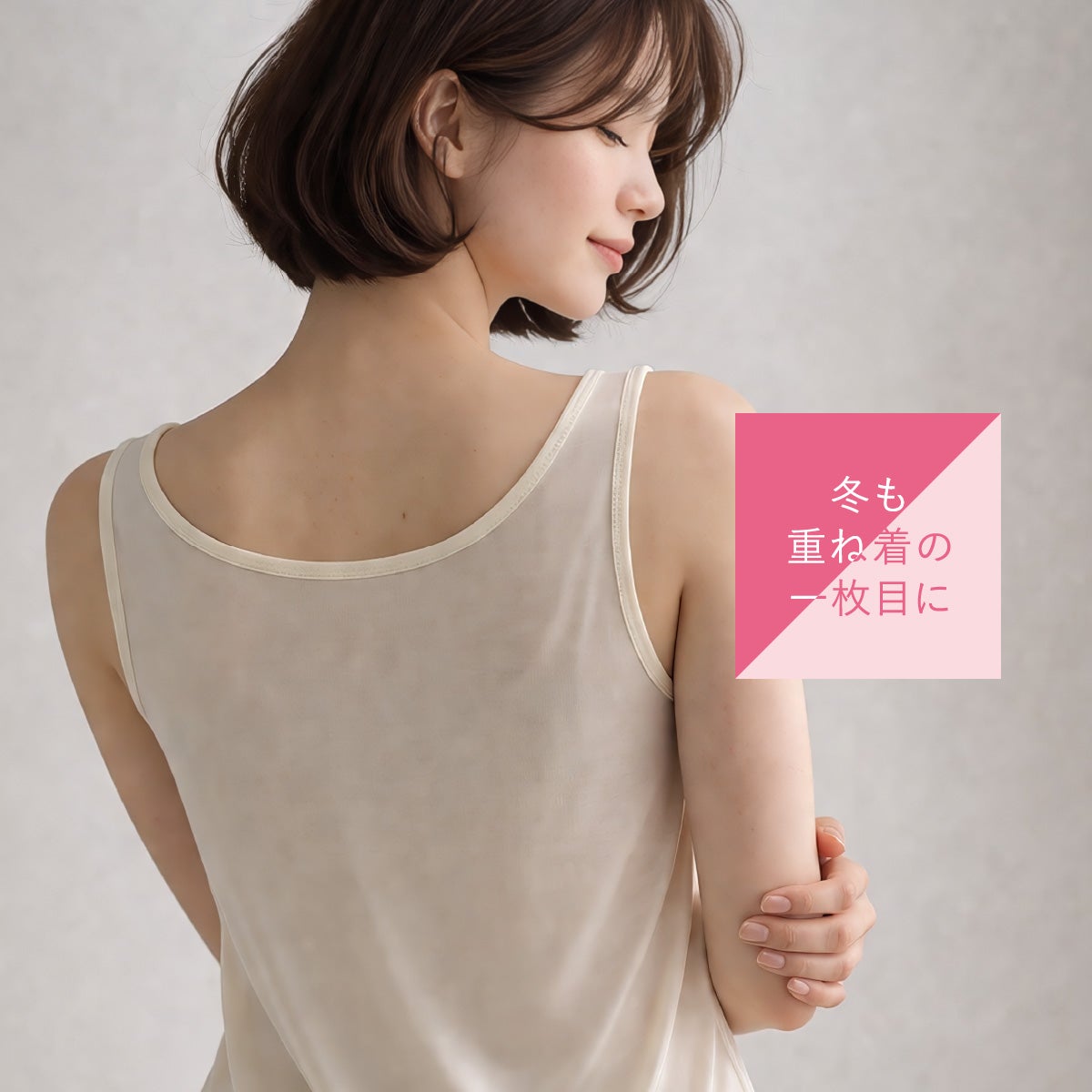 A. シルクは保温性にも優れているため、冬は暖かく着用いただけます。ただしこちらのタンクトップは薄手の生地なので、真冬は重ね着の一枚目としてご使用ください。