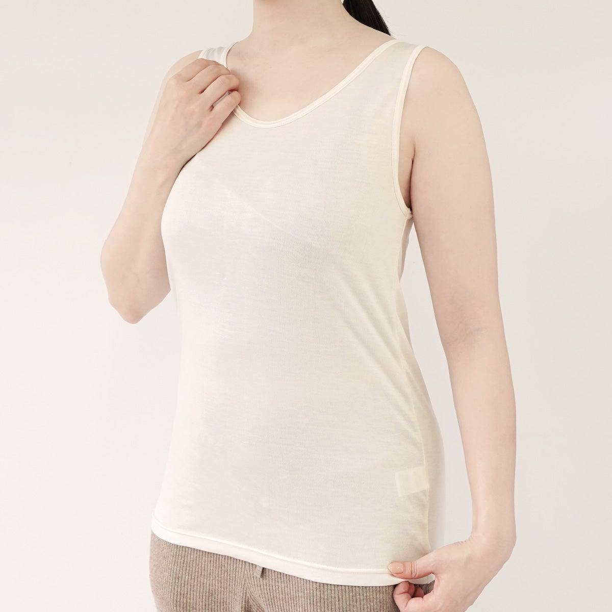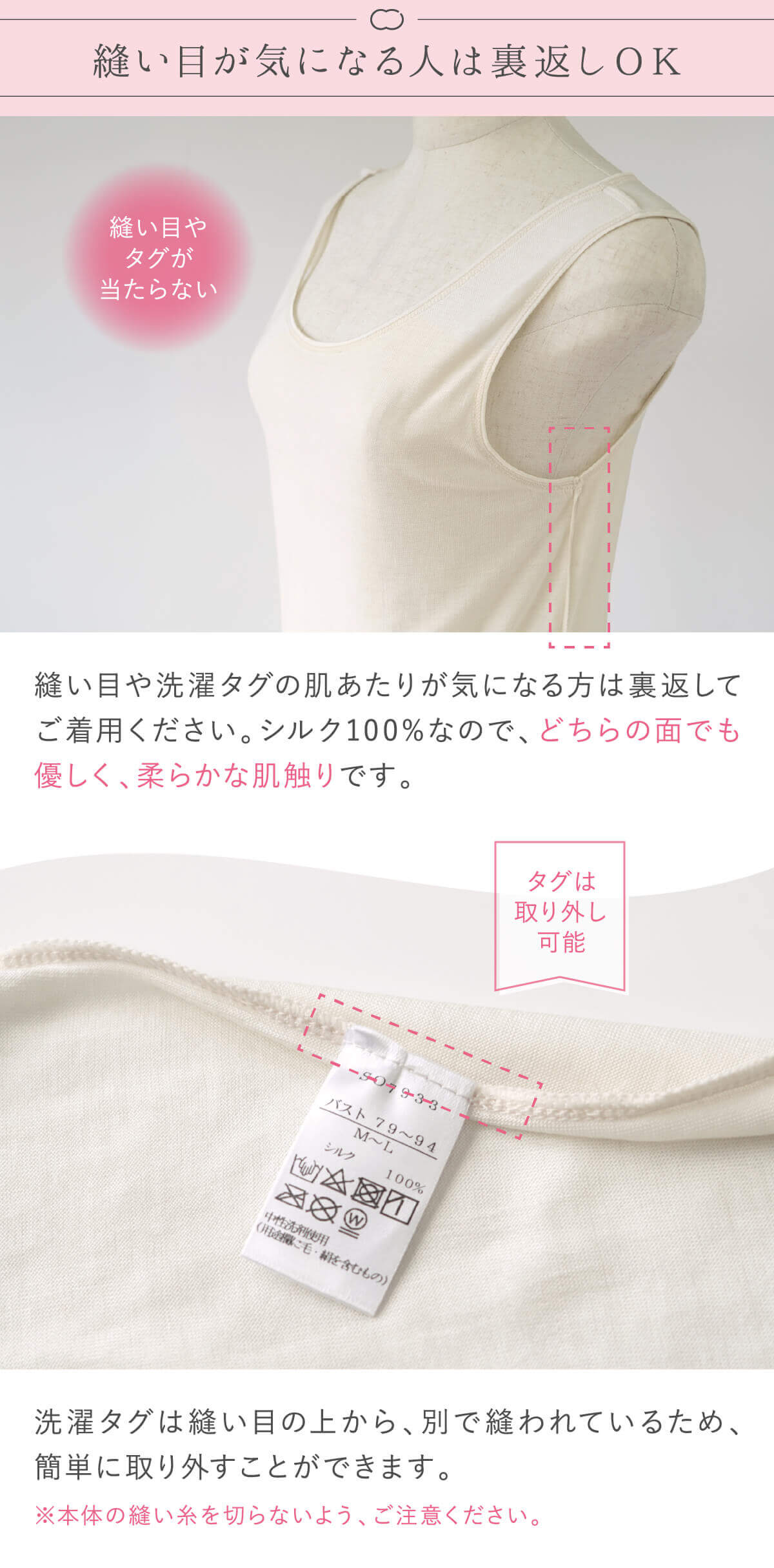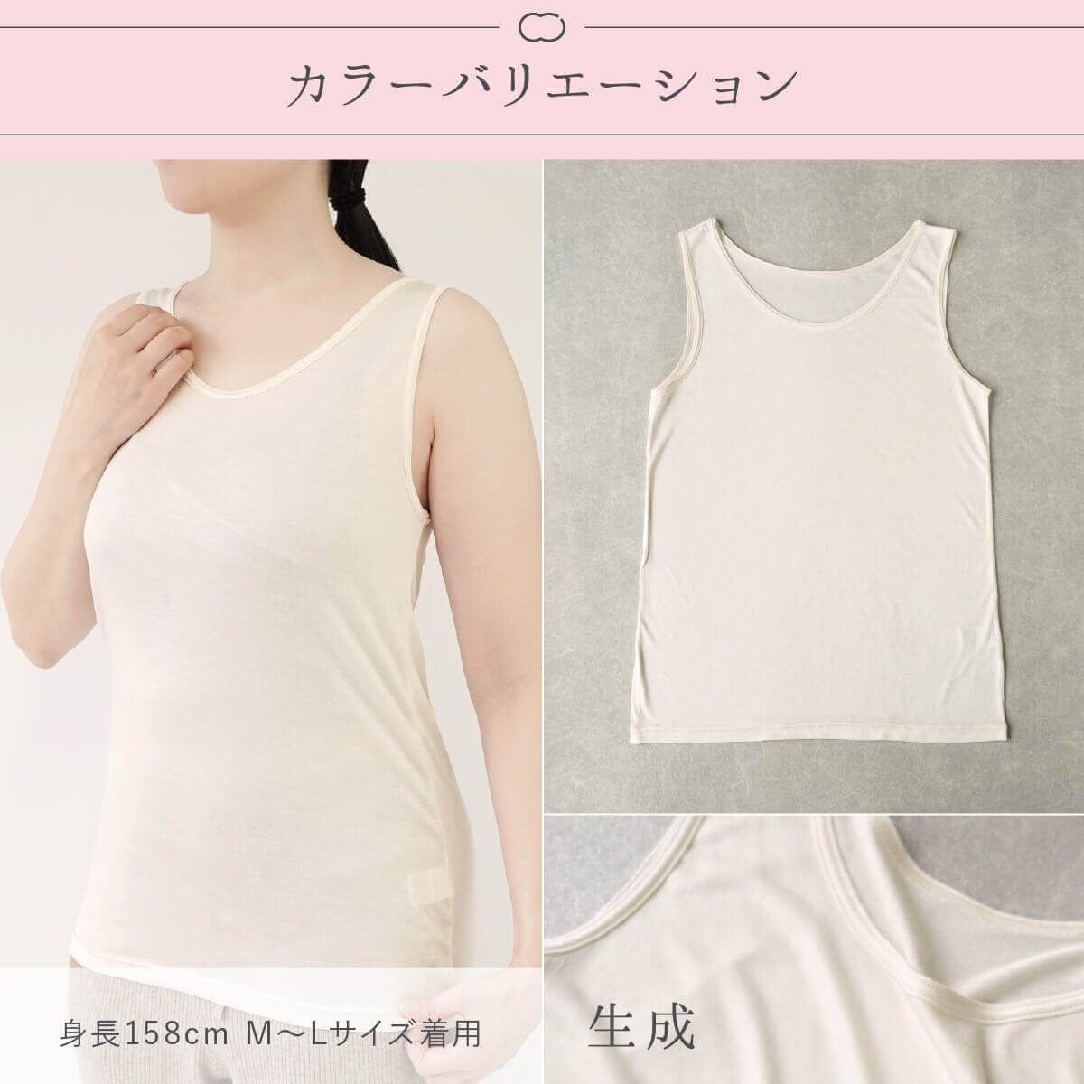 A. シルクは保温性にも優れているため、冬は暖かく着用いただけます。ただしこちらのタンクトップは薄手の生地なので、真冬は重ね着の一枚目としてご使用ください。