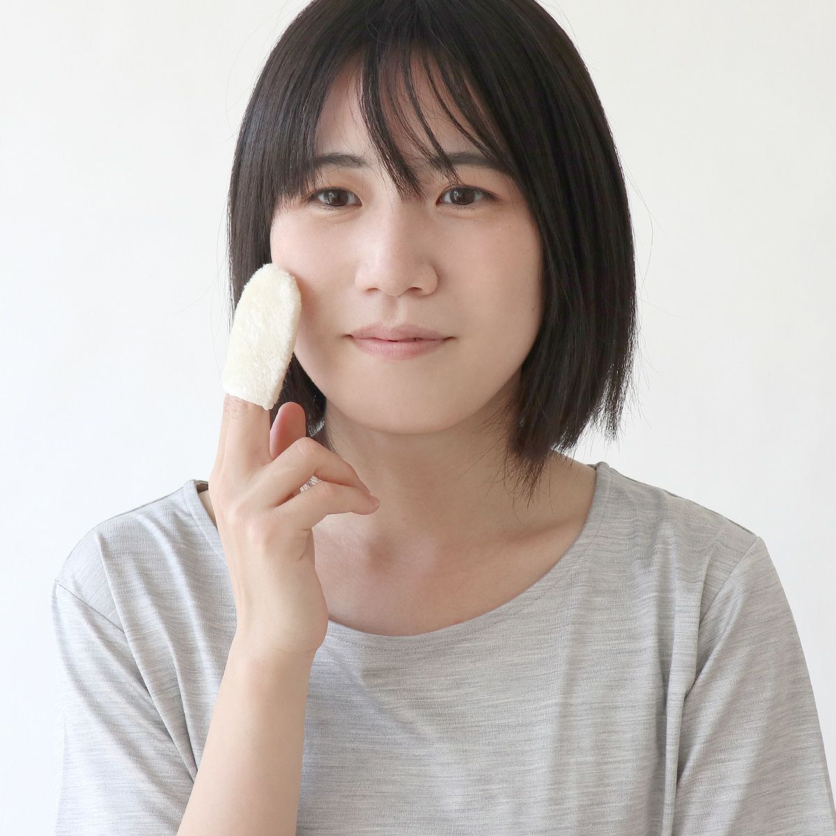 シルクボアを使用したフィンガーミトン。 洗顔時にお顔の隅々まで汚れや皮脂をやさしく落とします。