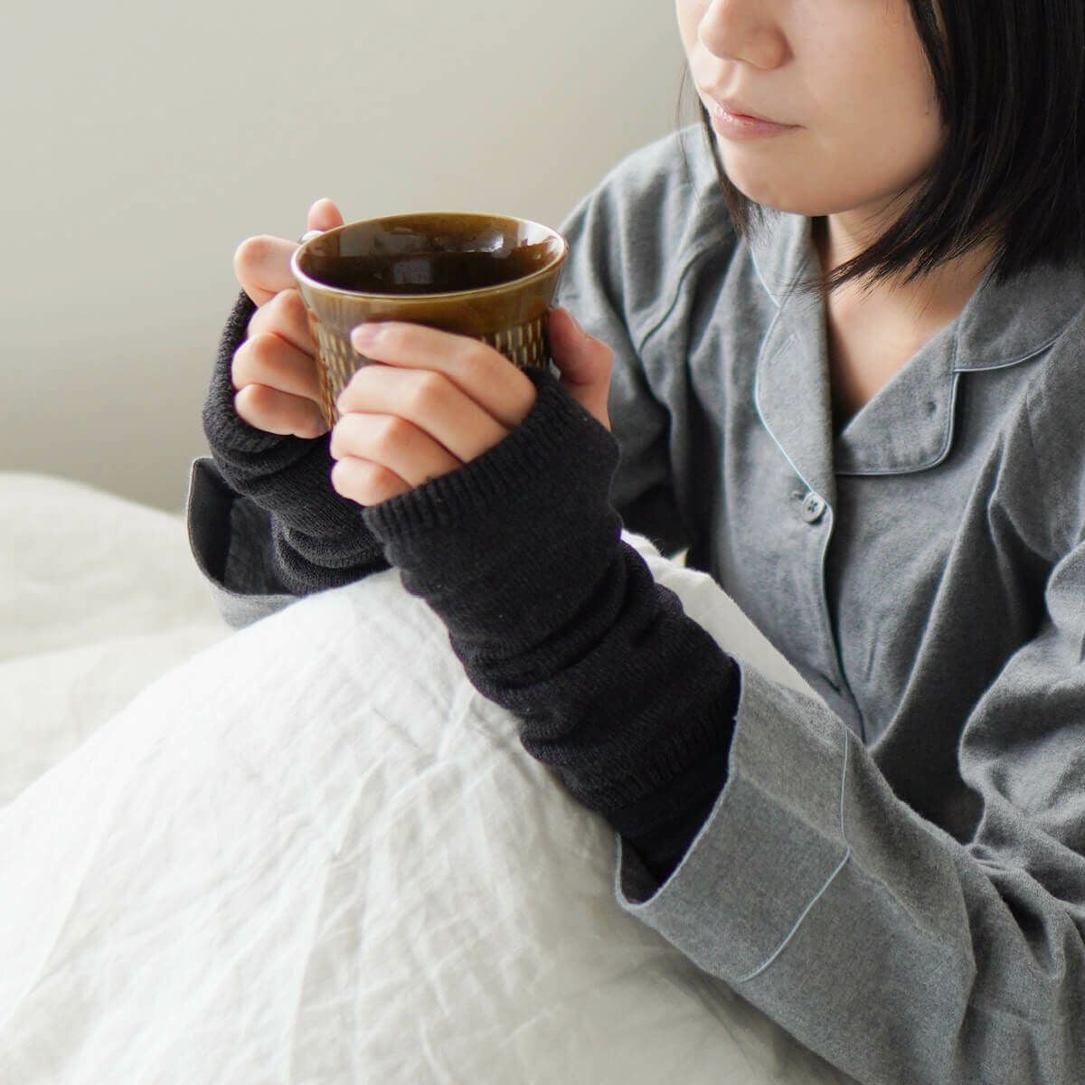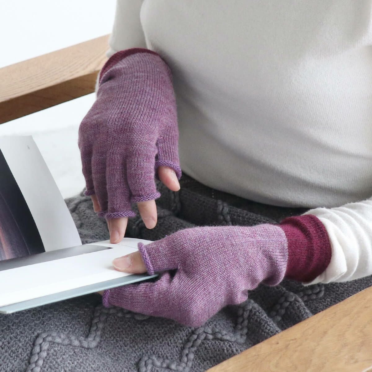 絹屋 内側シルク混 チクチクしにくい ウールハンドウォーマー