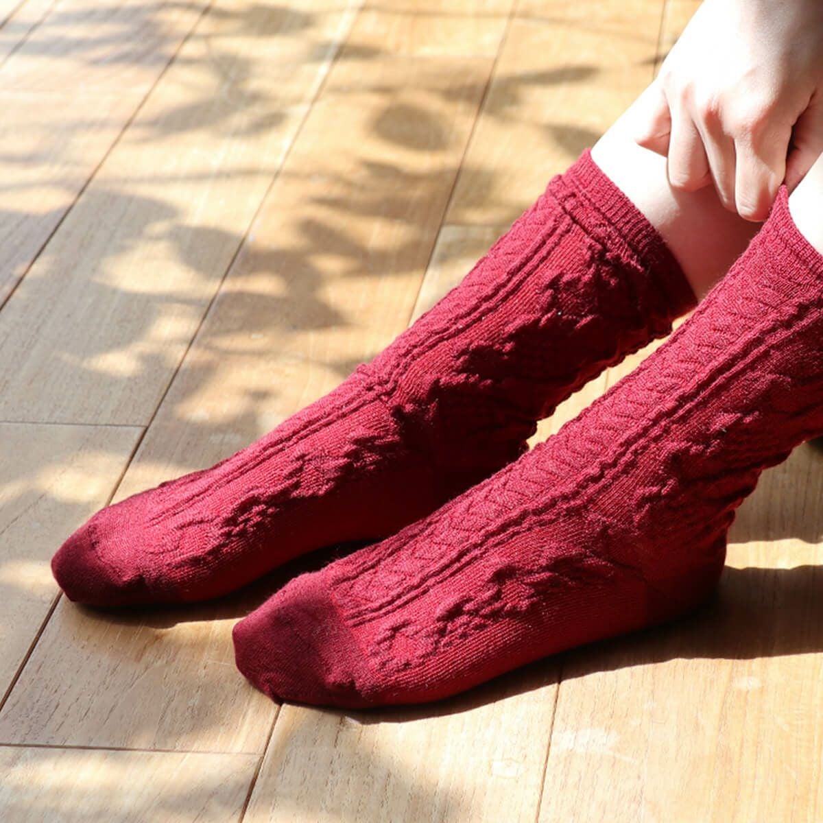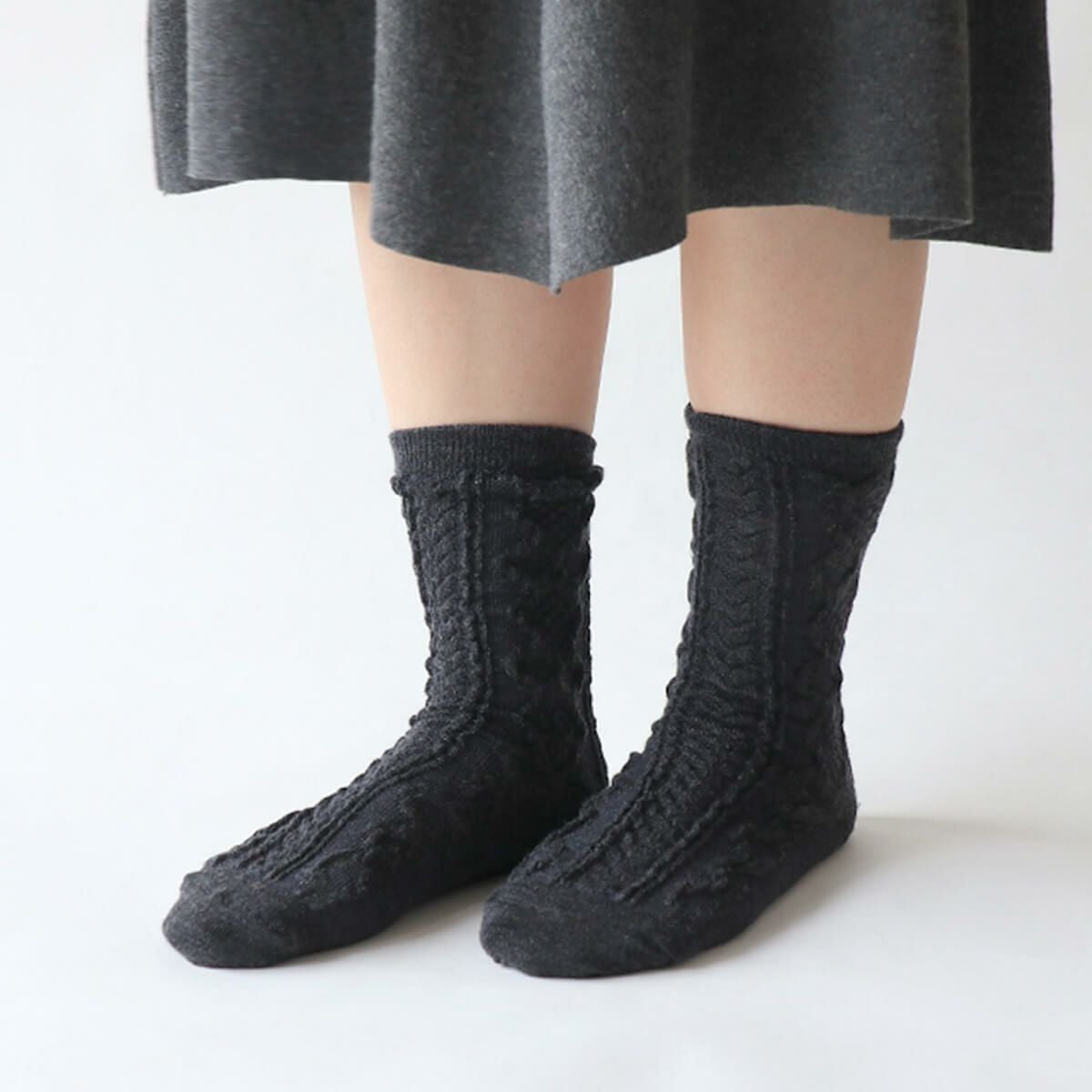 絹屋 内側シルク2重編み靴下 ウール混 編み柄