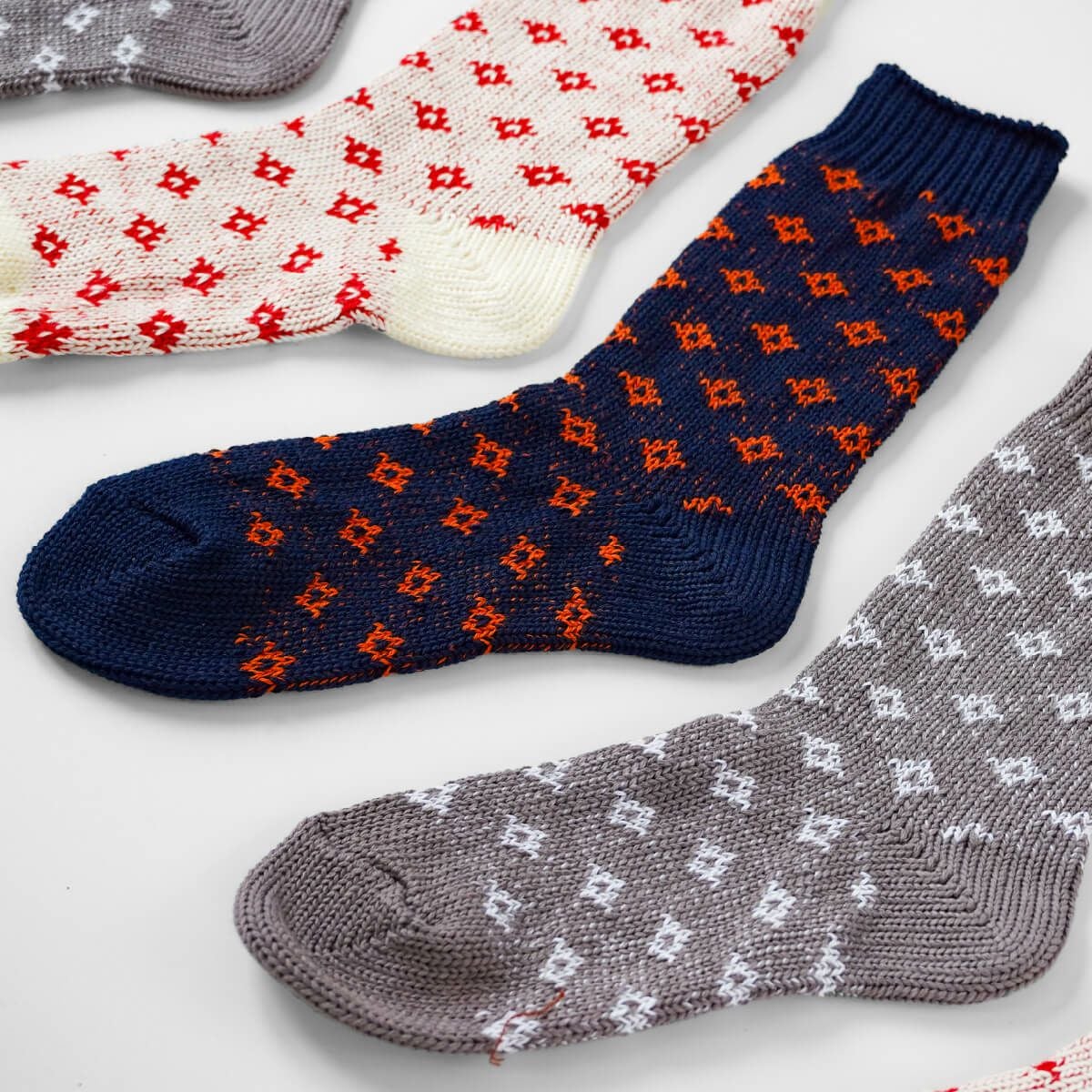 特殊な編み方で編み上げた靴下。