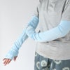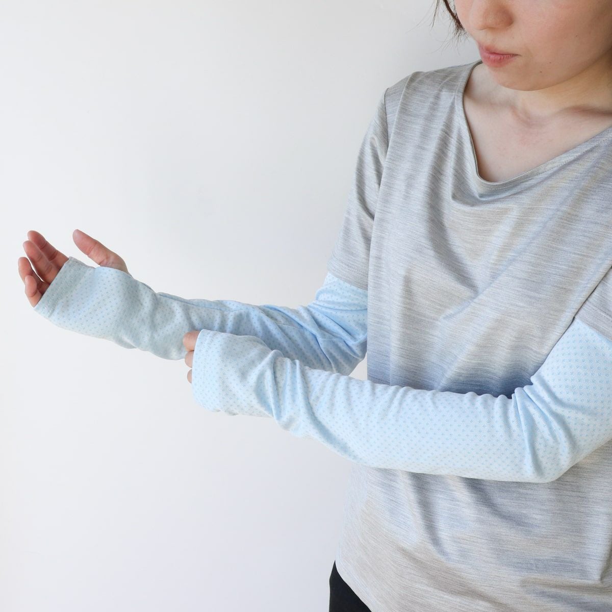 UV効果があり、花粉が付きにくい素材なので夏にぴったりのアームカバーです。親指穴がついているので車の運転やスマートフォンの操作も楽々できます。