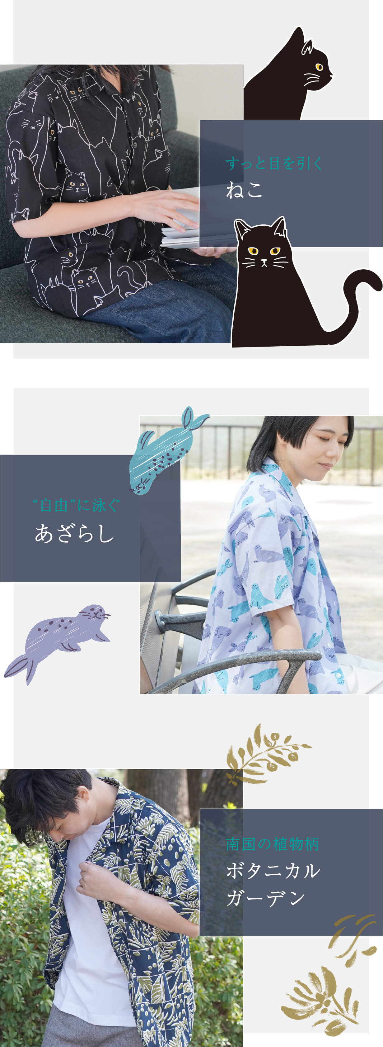 犬(グレー・イエロー) / 綿花(ブルー・グリーン) / あざらし(ライトブルー・パープル) / ボタニカルガーデン(ネイビー・ブラウン) / ねこ(ブラック) / ロボット(グリーン) / 無地(ブラック・グリーン・チャコール・ネイビー・グレー・ブルー・ピンク・デニムブルー)