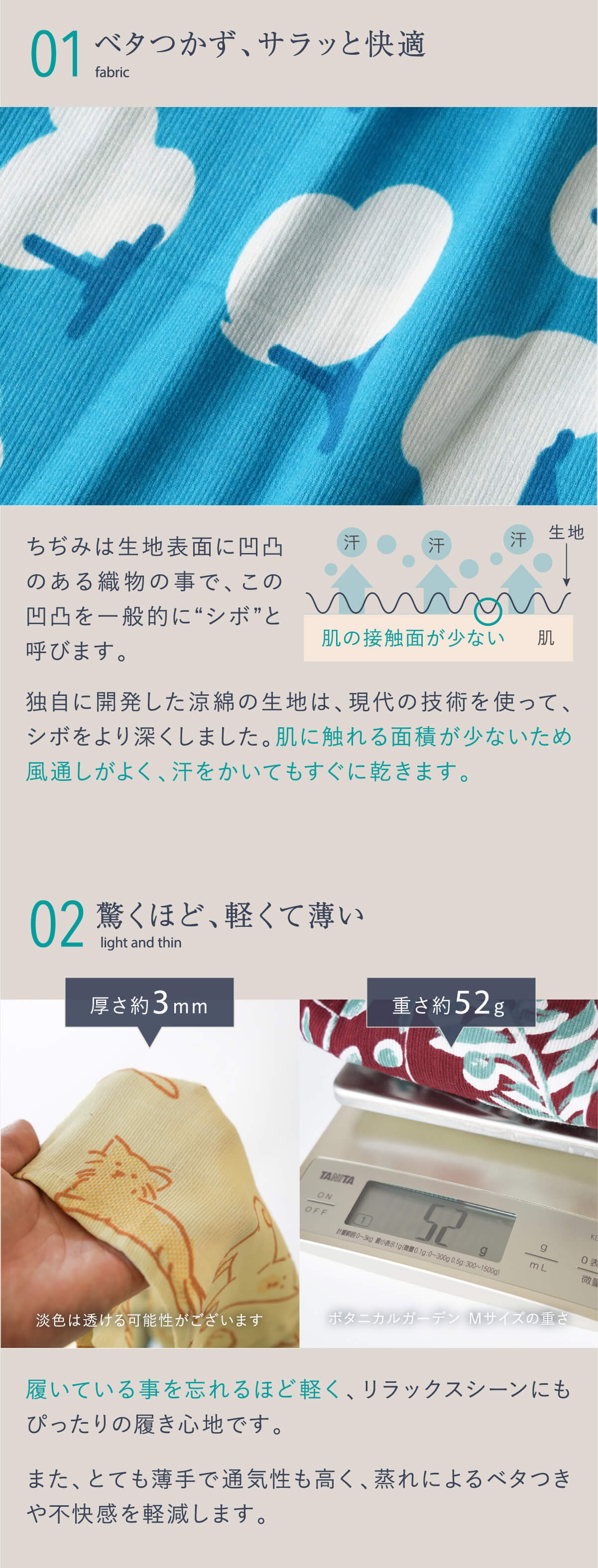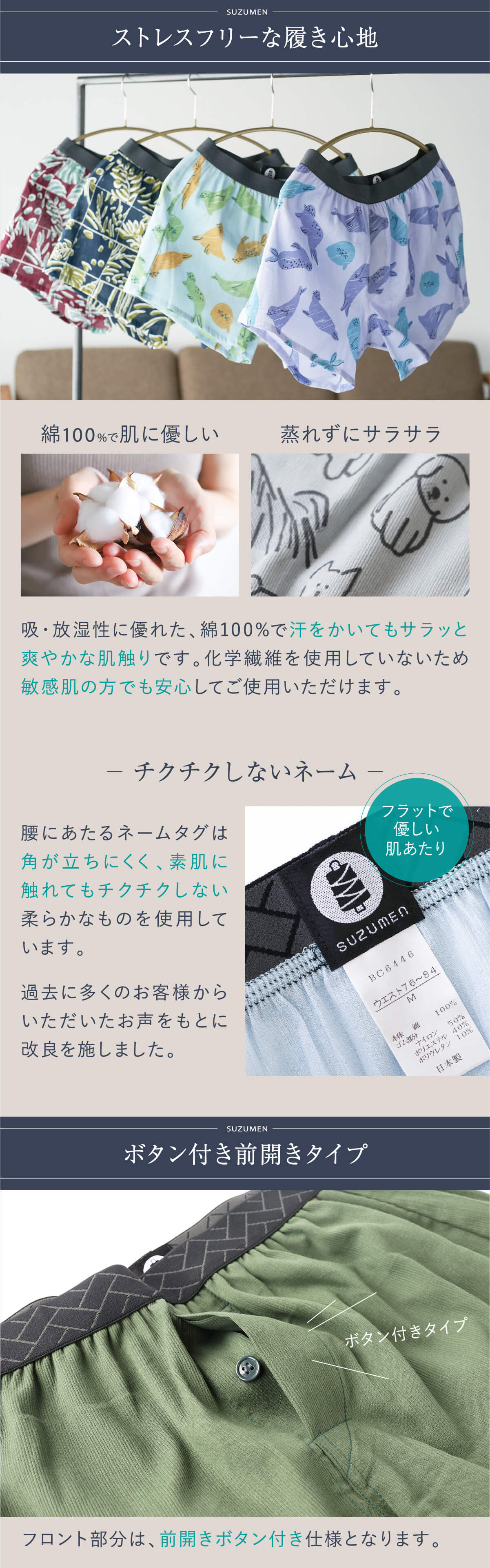 風通し・サラッとした着心地・伸縮性にこだわった「涼綿(すずめん)」を作りました。
