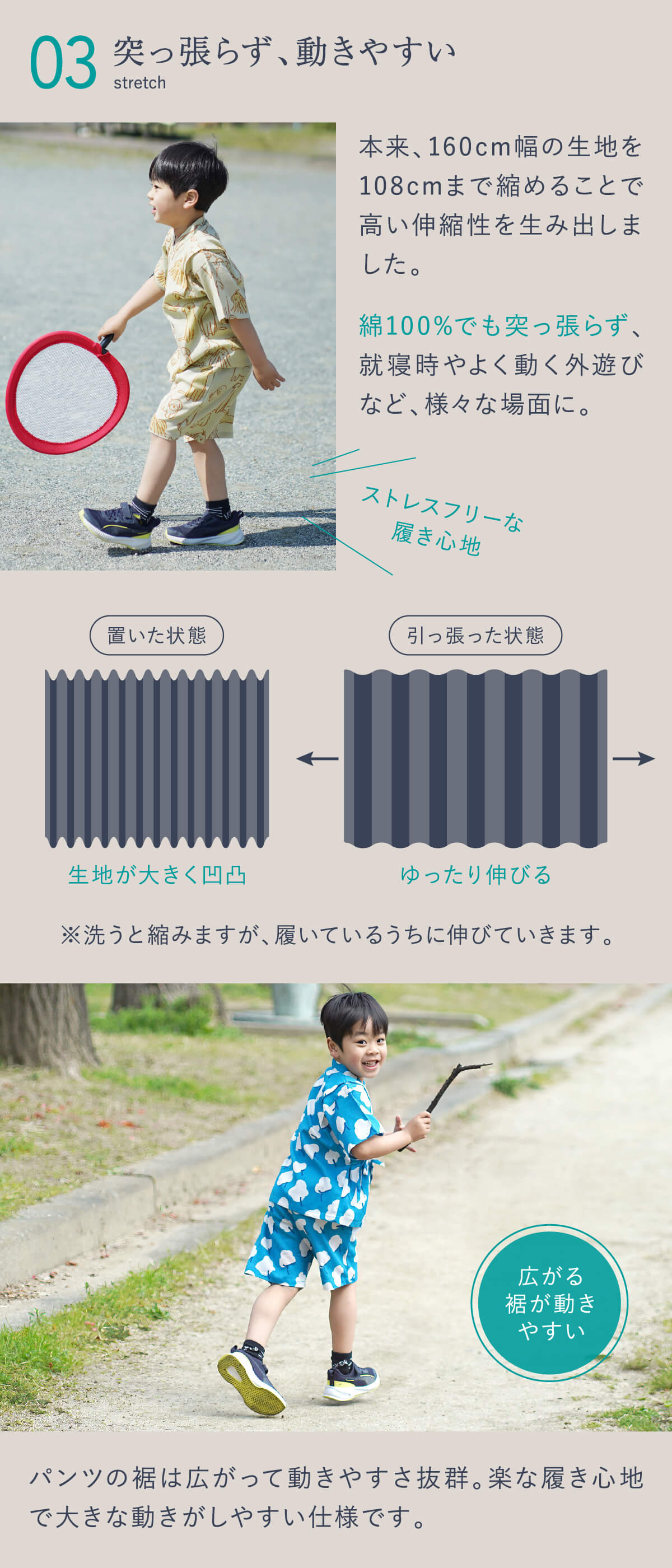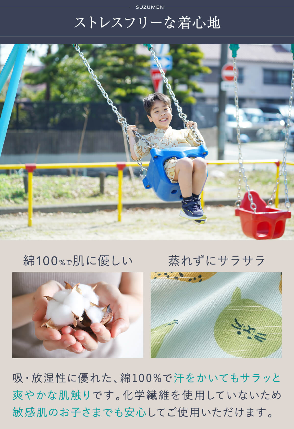 伸縮性にこだわった「涼綿(すずめん)」。