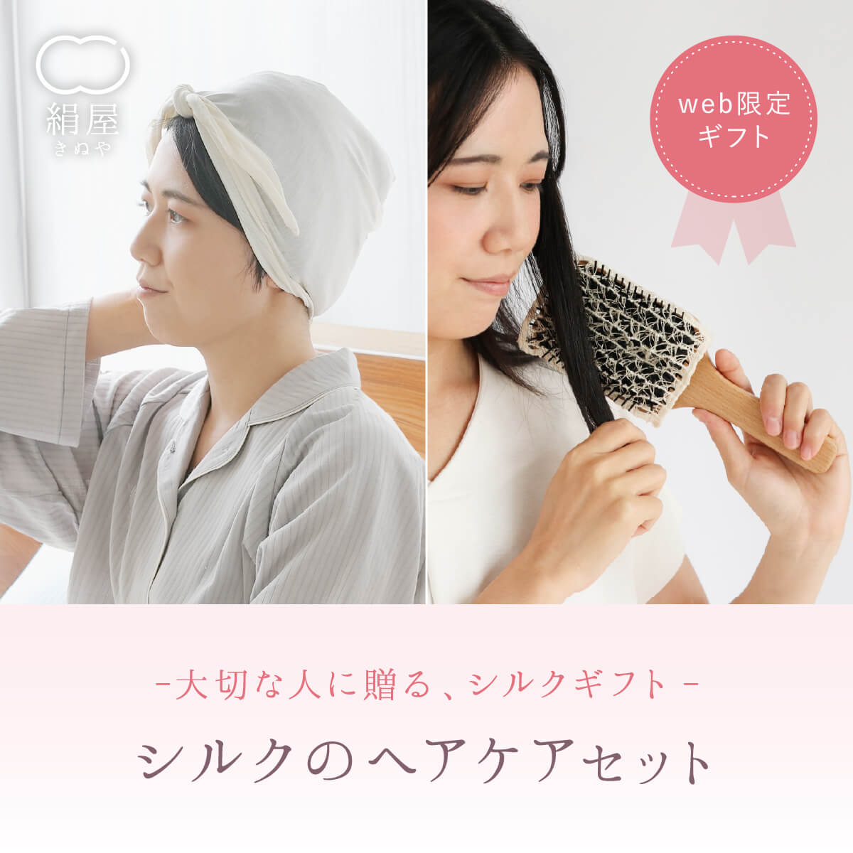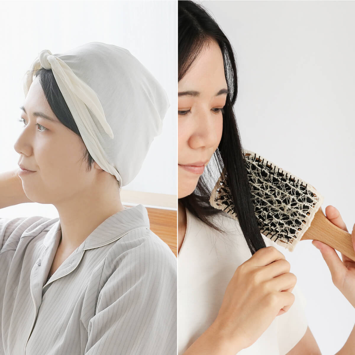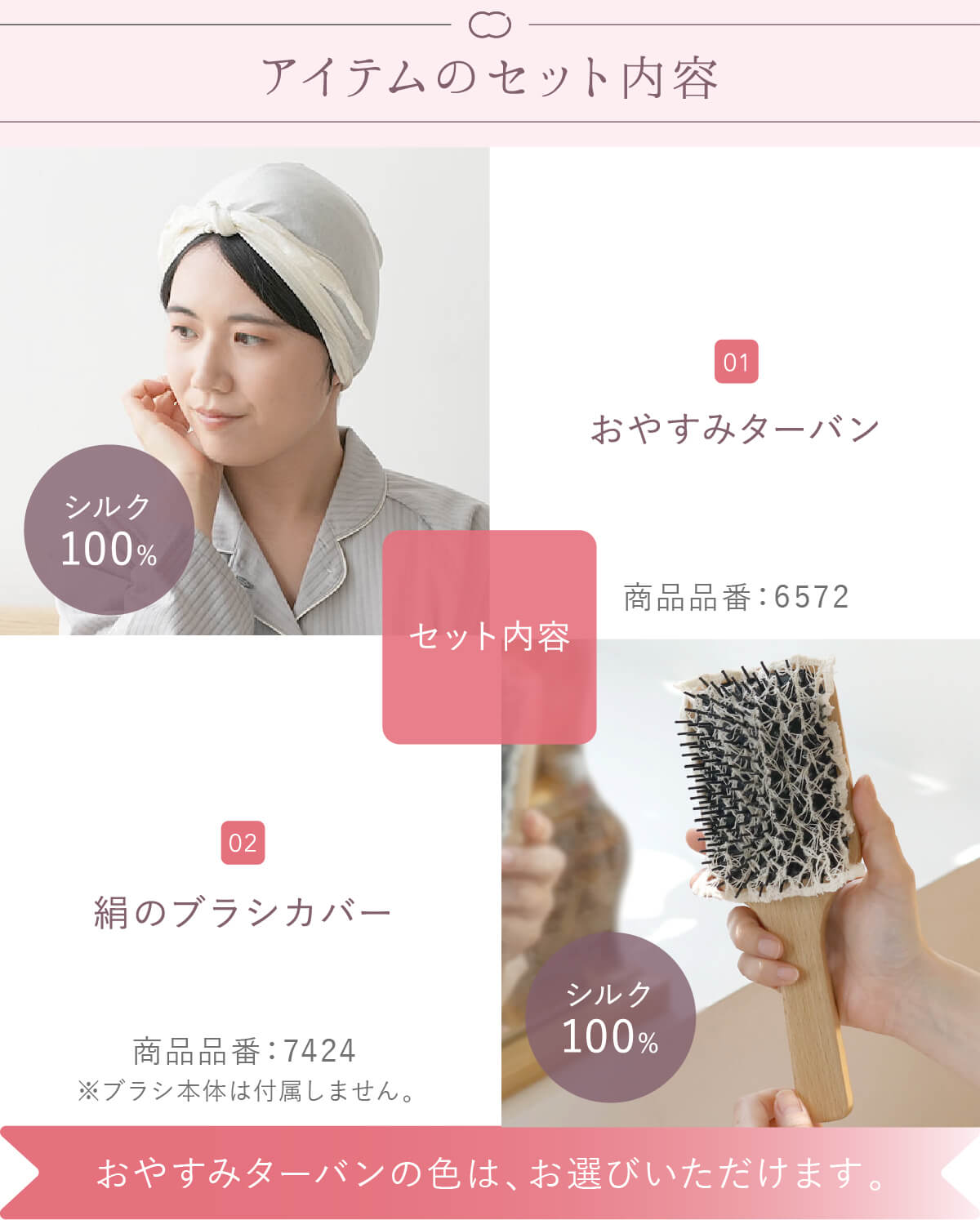 シルクのヘアケアセット おやすみターバン×絹のブラシカバー