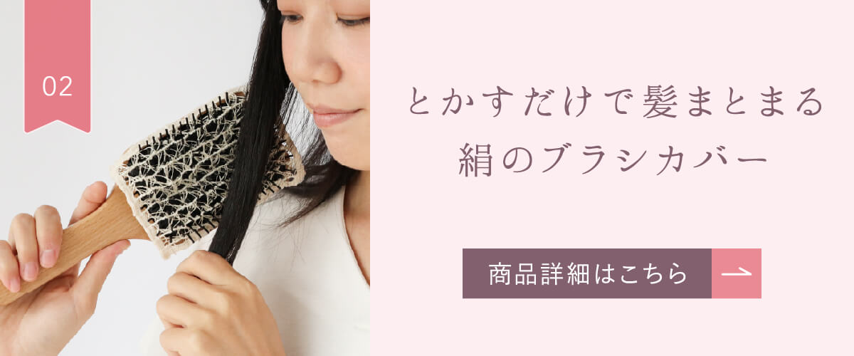 2.アレルギー体質の方、また傷や湿疹など頭皮に異常がある時にはご使用にならないでください。ブラシの形状により使用できないものがあります。ドライヤー機能付きのブラシなどには使用しないでください。シルクの特性上、ネップのような繊維のフシが混入することがありますが、不良ではありませんので予めご了承ください。