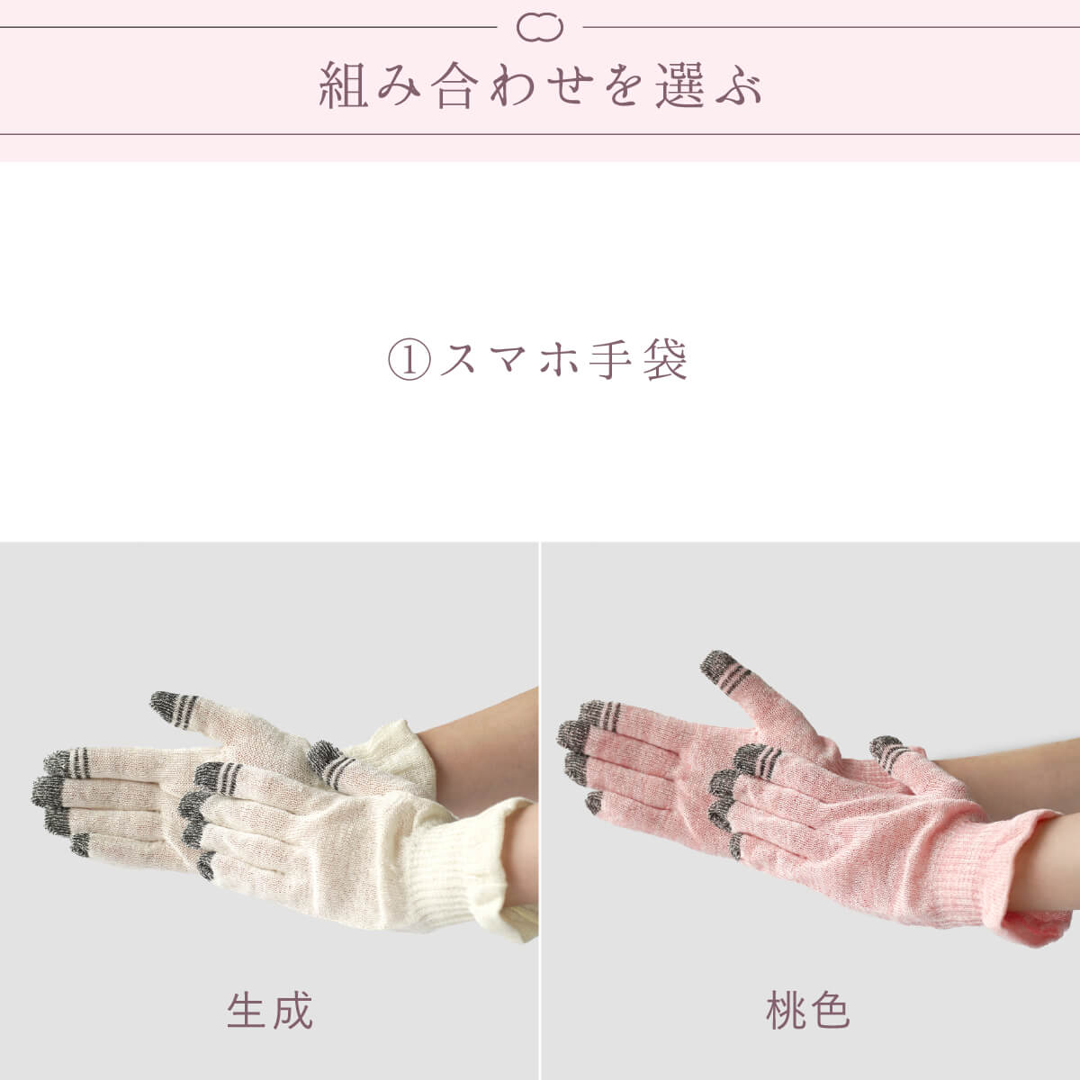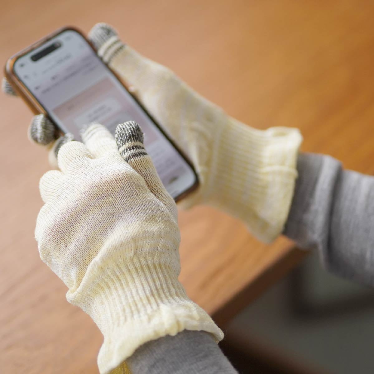 組成 スマホ手袋:シルク100% ※指先の一部に導電性繊維(ポリエステル)を使用(金属ではありませんので金属アレルギーの方もご使用いただけます)