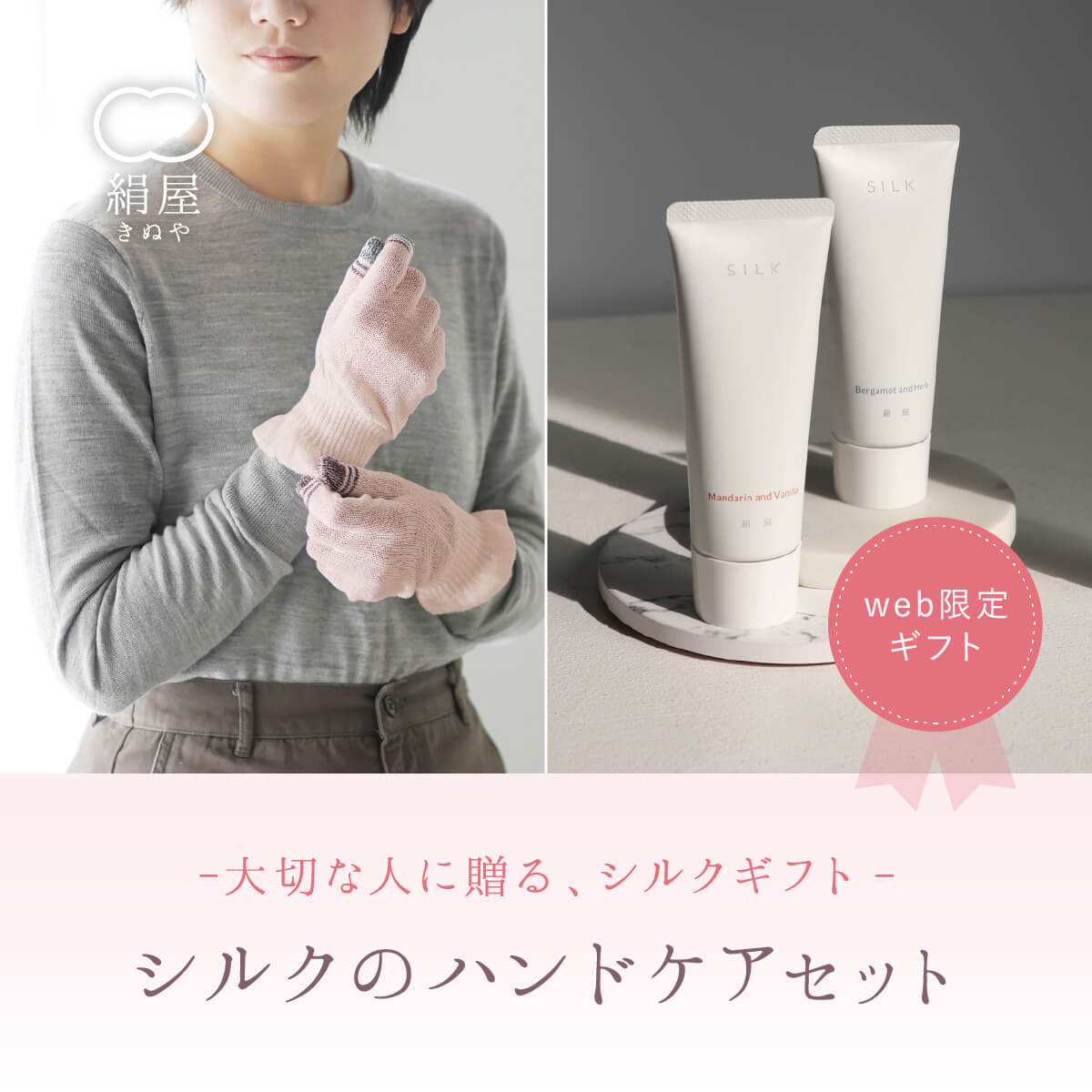 スマホ手袋×国産シルクのハンドクリーム シルクのハンドケアセット