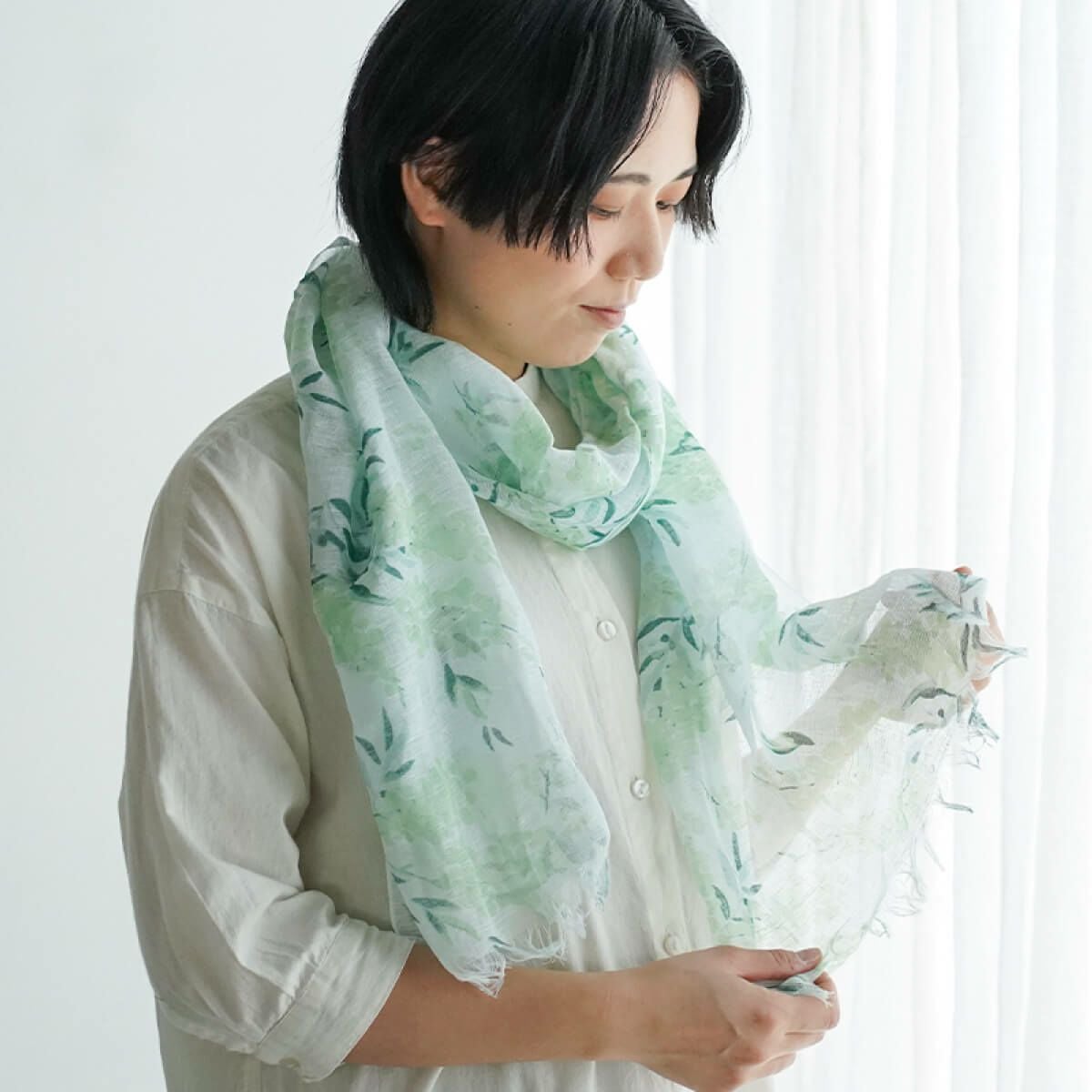 麻特有のシャリ感から肌にべたつかず、汗をかいても爽やかにご使用頂ける麻と綿のストール。