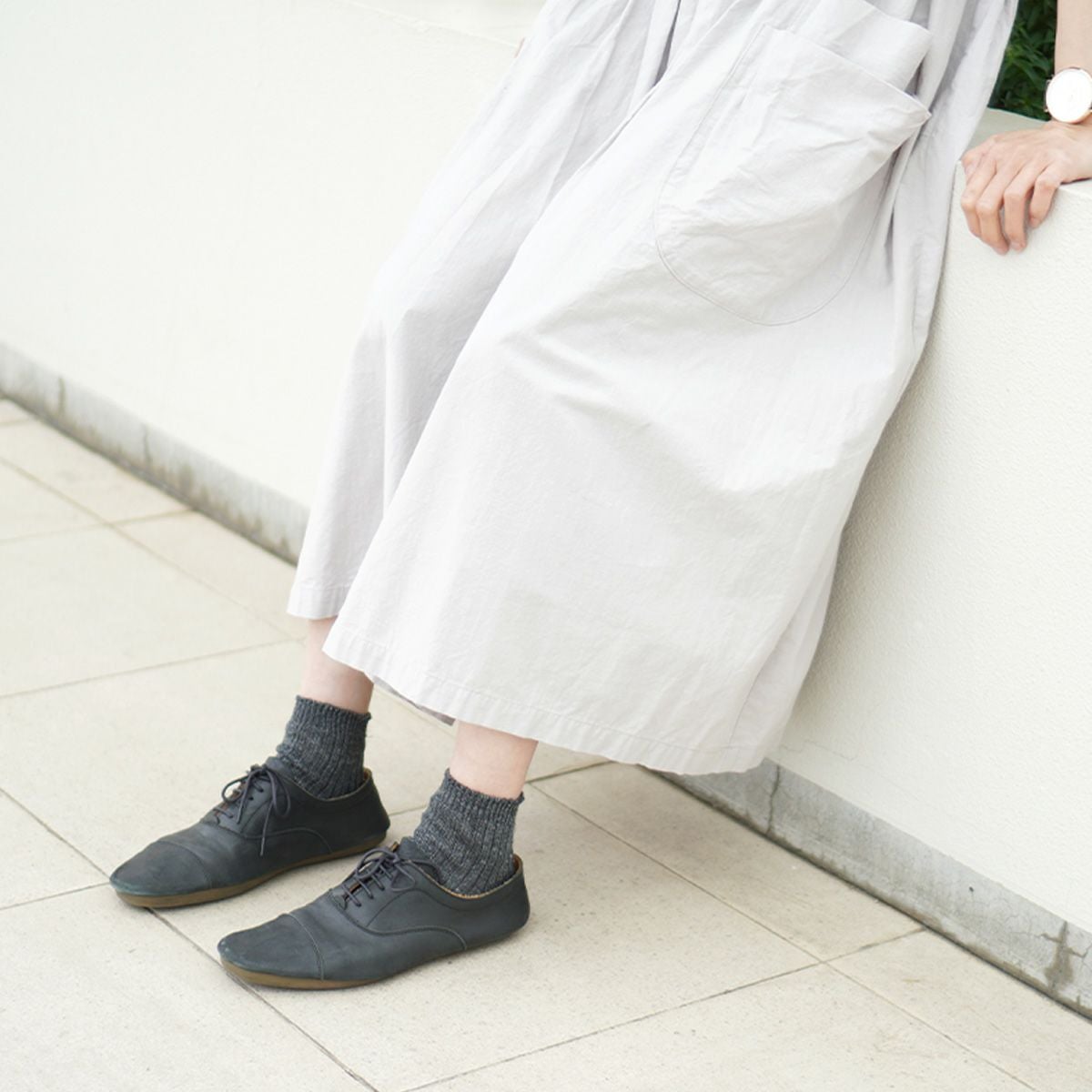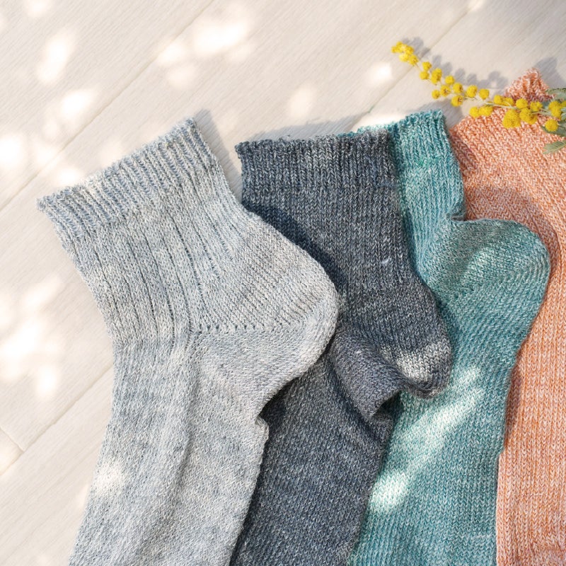 フランスの良質なリネンを使用した、美しい光沢感のある靴下です。シャリ感のある爽やかな素材で、1日中サラッと快適な履き心地です。春夏に使いやすいショート丈で、パンツやスカートの裾からチラッと見せて、コーディネートのアクセントに◎