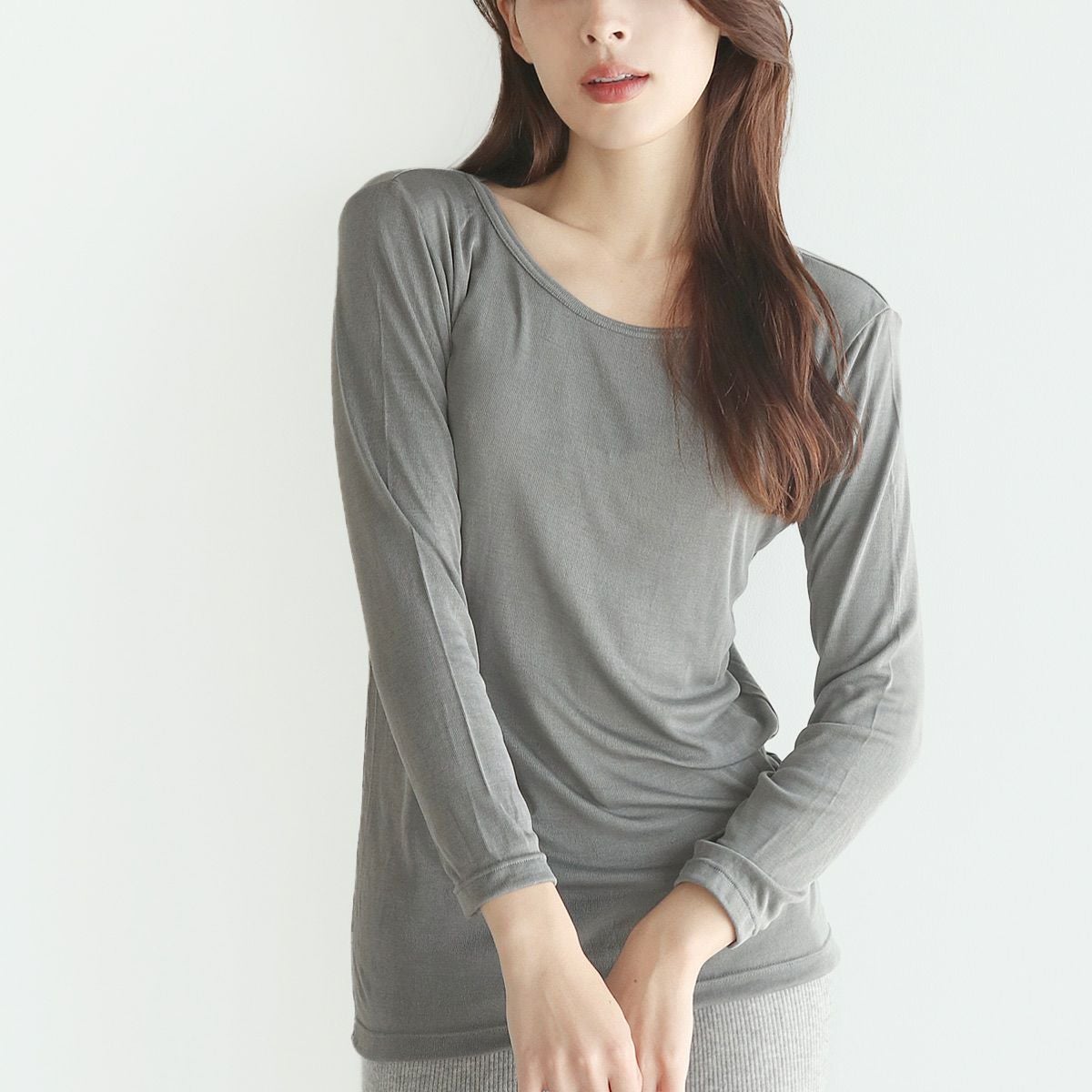 商品名 シルク100% フライス編みインナー Uネック/クルーネック