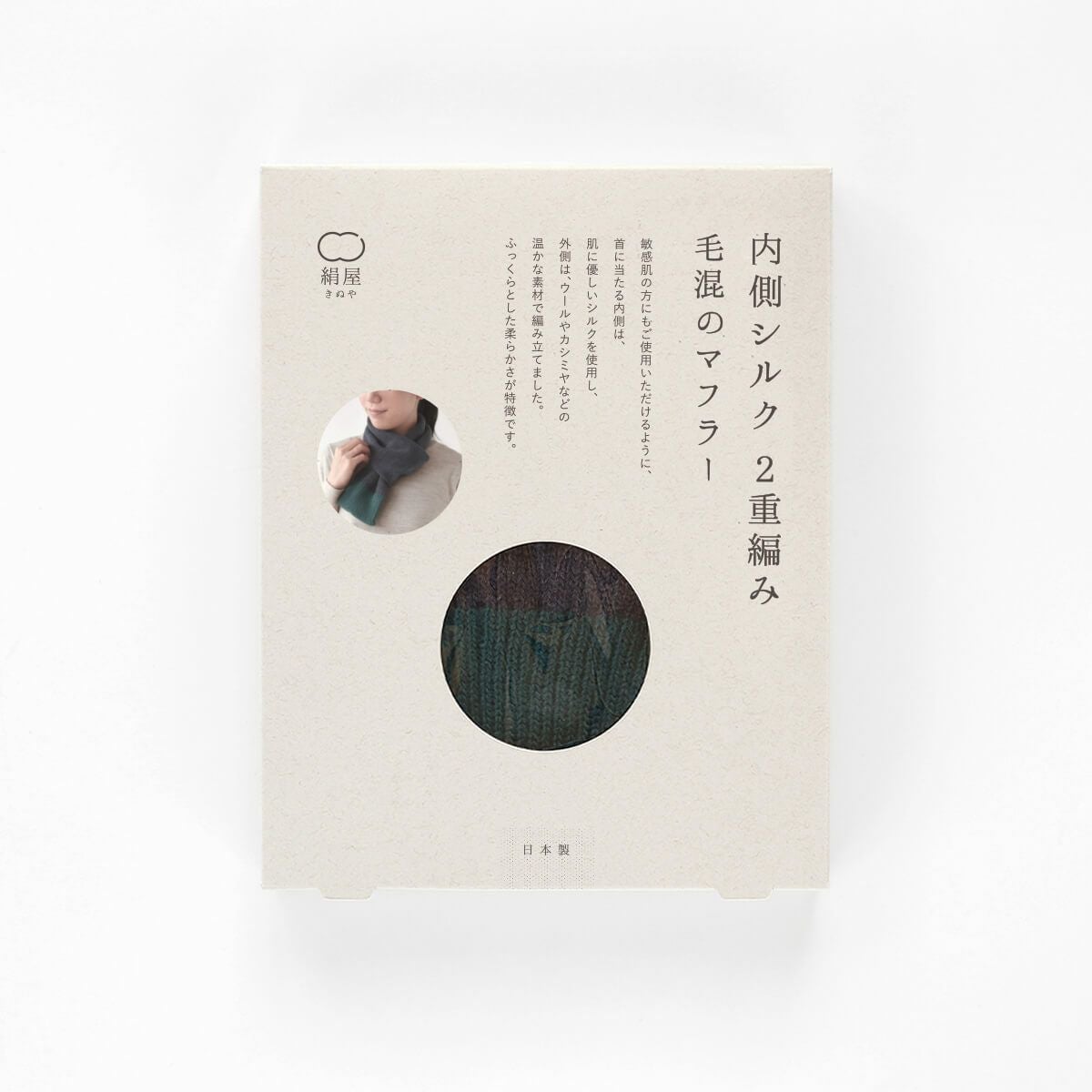 絹屋 内側シルク2重編み 毛混のマフラー