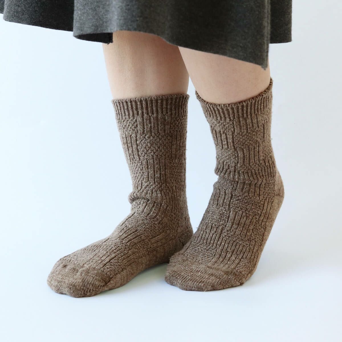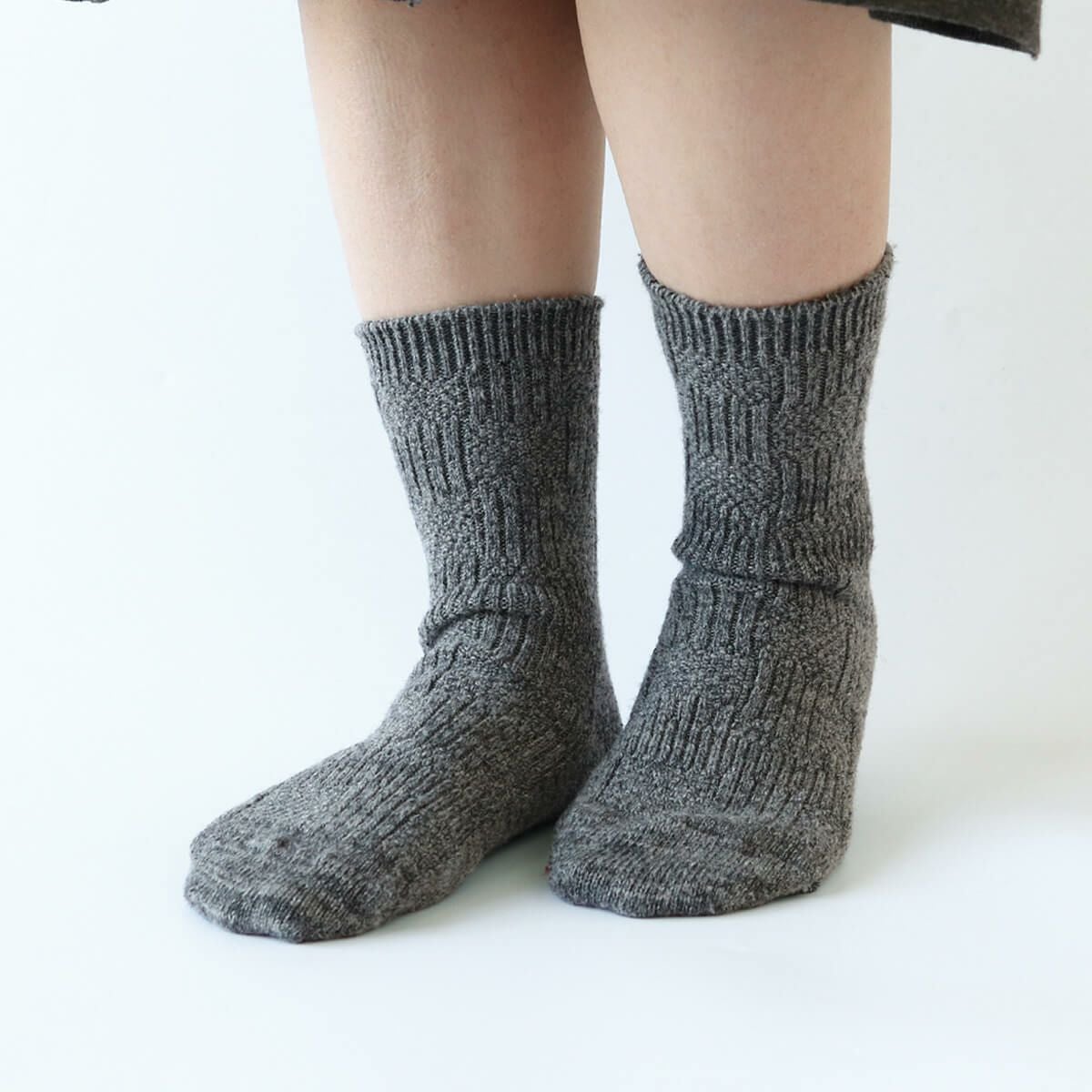 商品名 絹屋 シルクとウール混の編み柄靴下