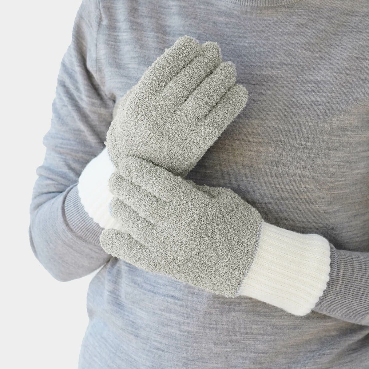 内側シルク2重編みウール混もこもこ手袋