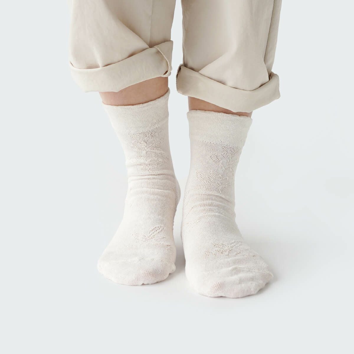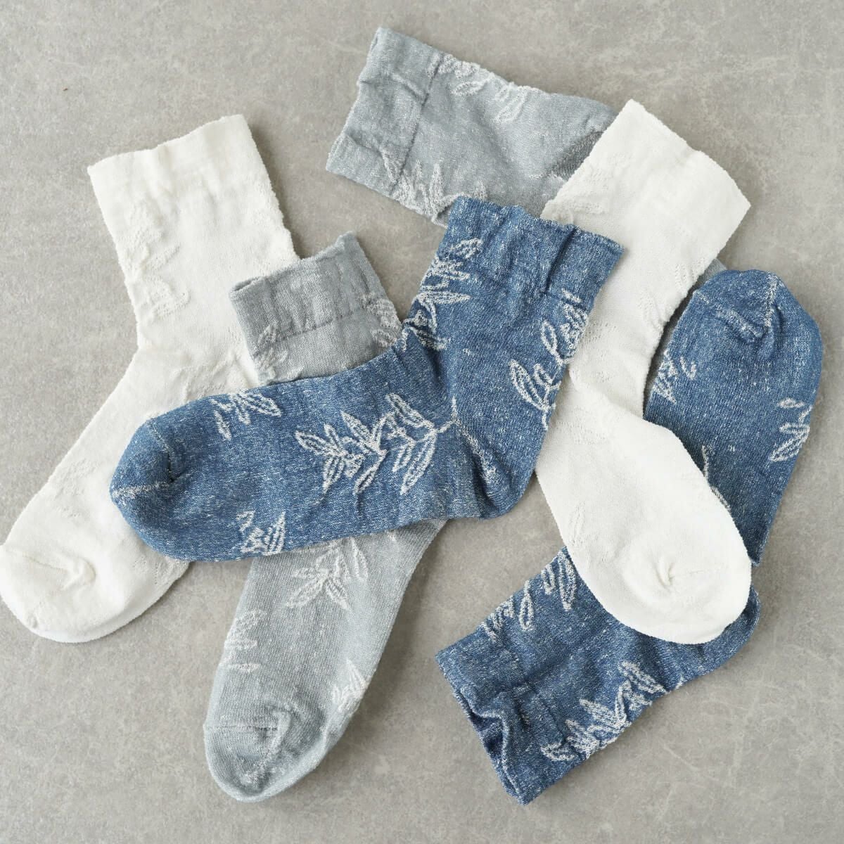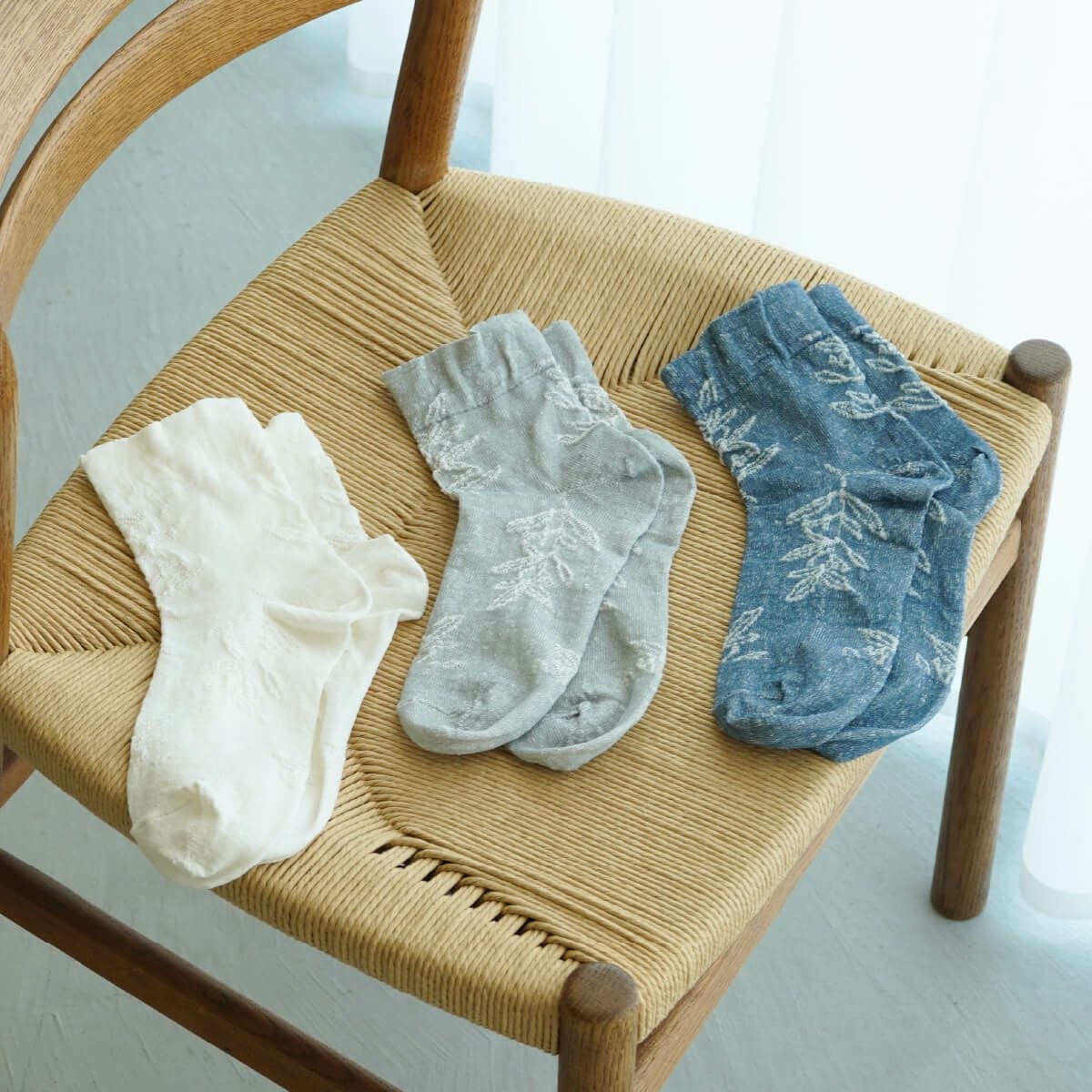 linen 汗でベタつきにくい 麻の靴下 植物柄