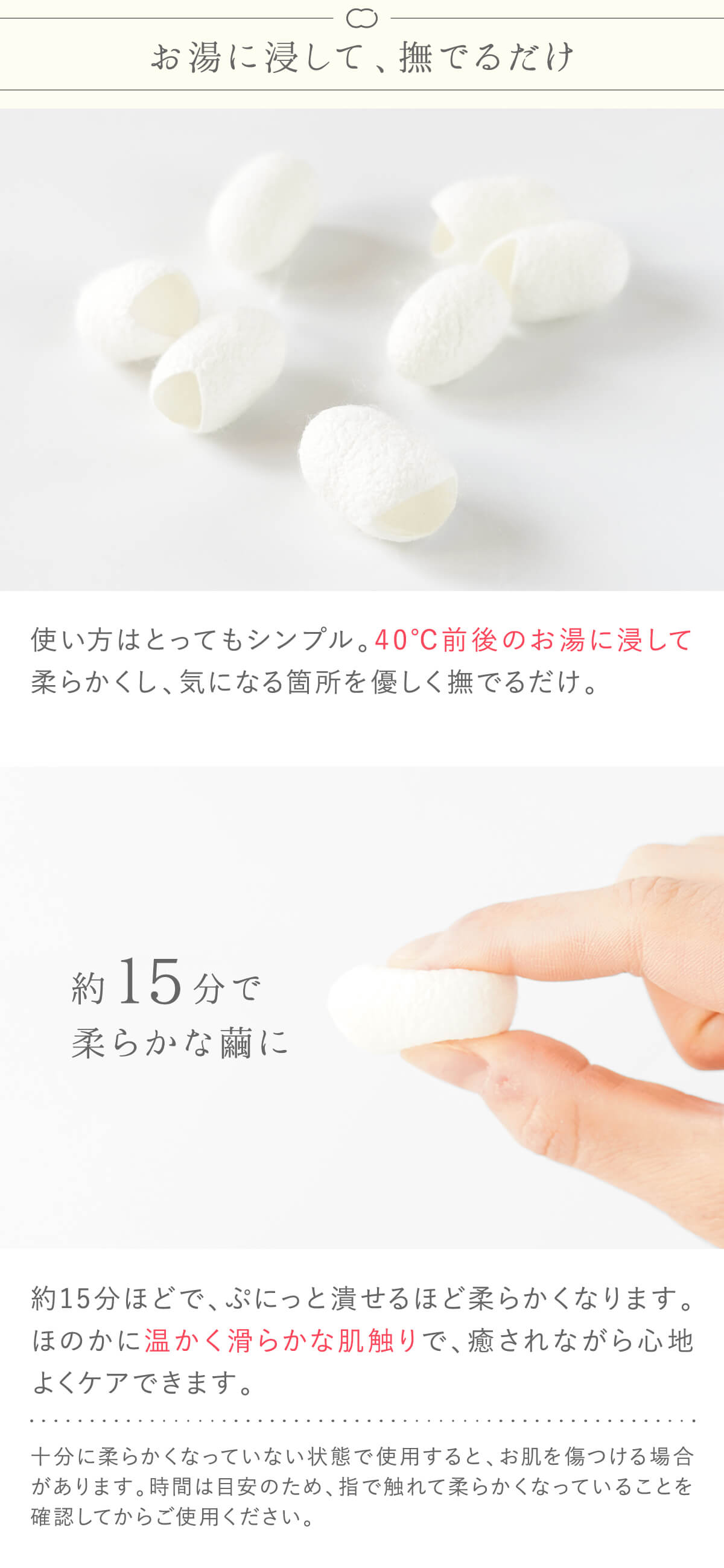 ・衛生上の理由から、一度使用したまゆ玉の再使用はお控えください。