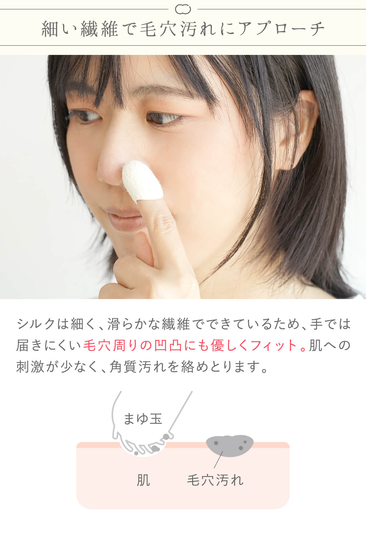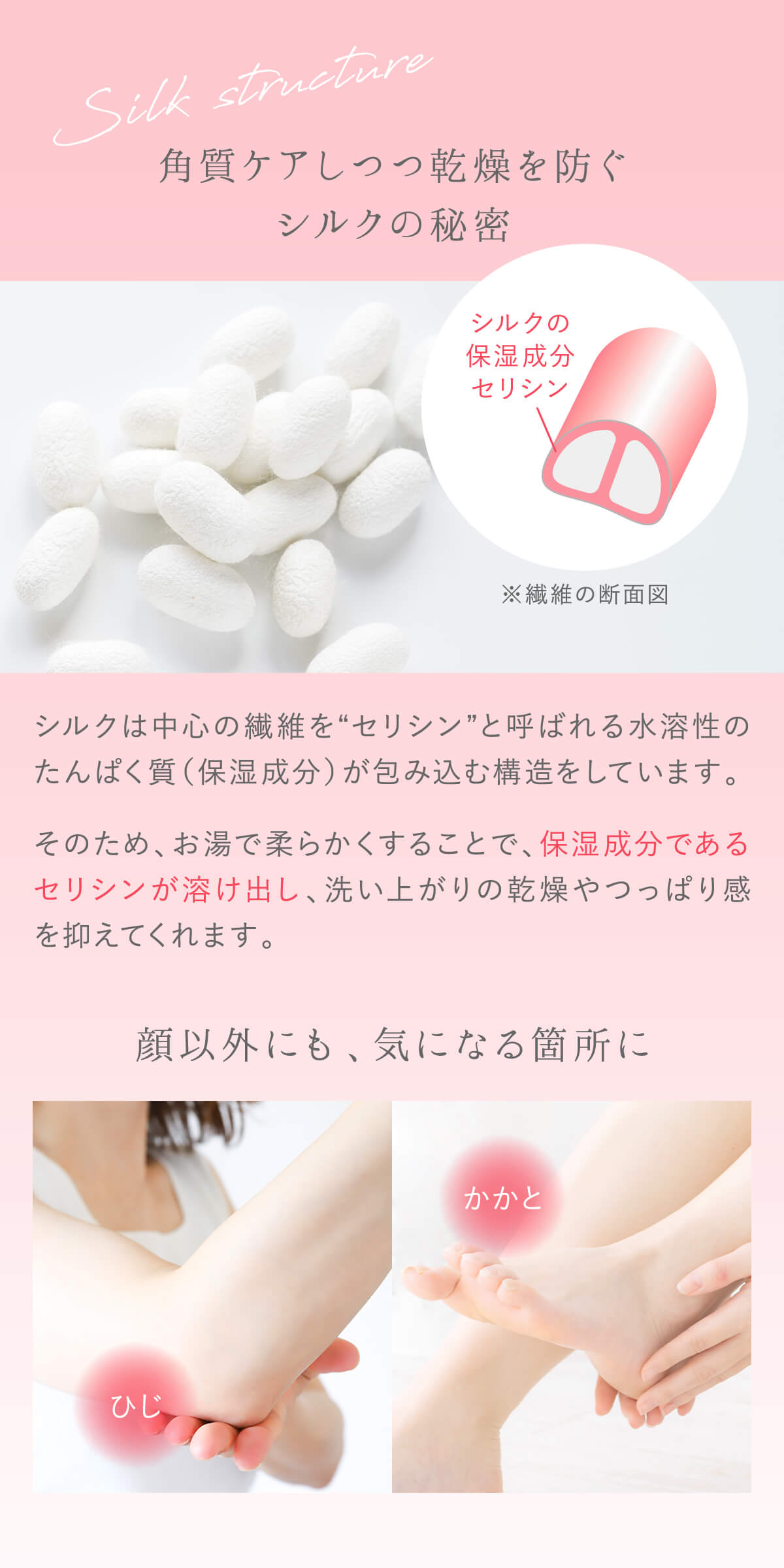 シルクの保湿成分も溶け出すことで、乾燥を防ぎつつ優しくケアできます。