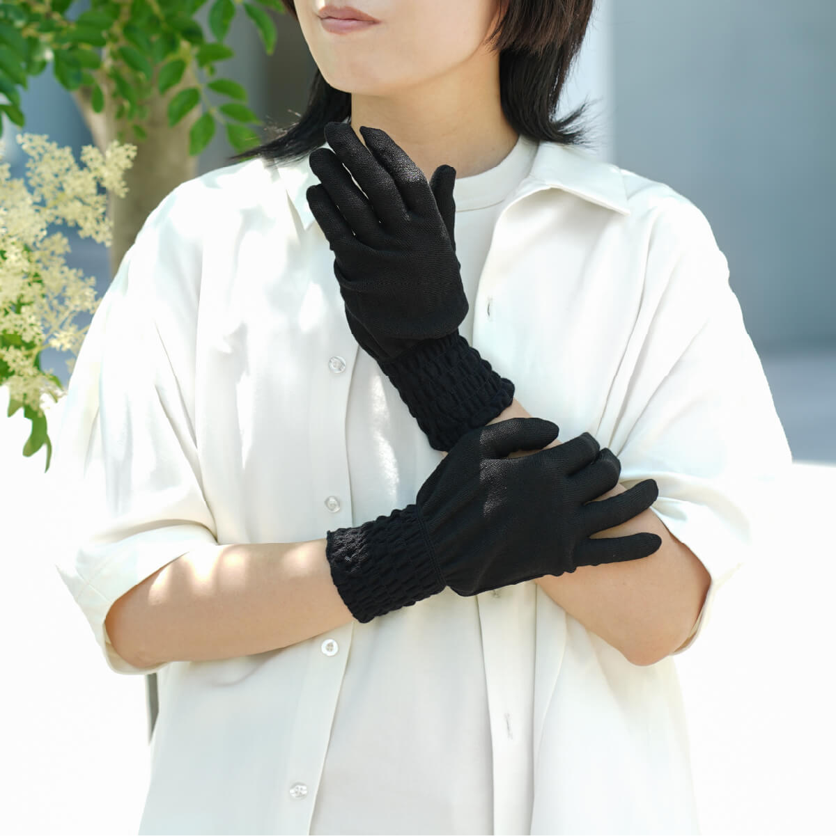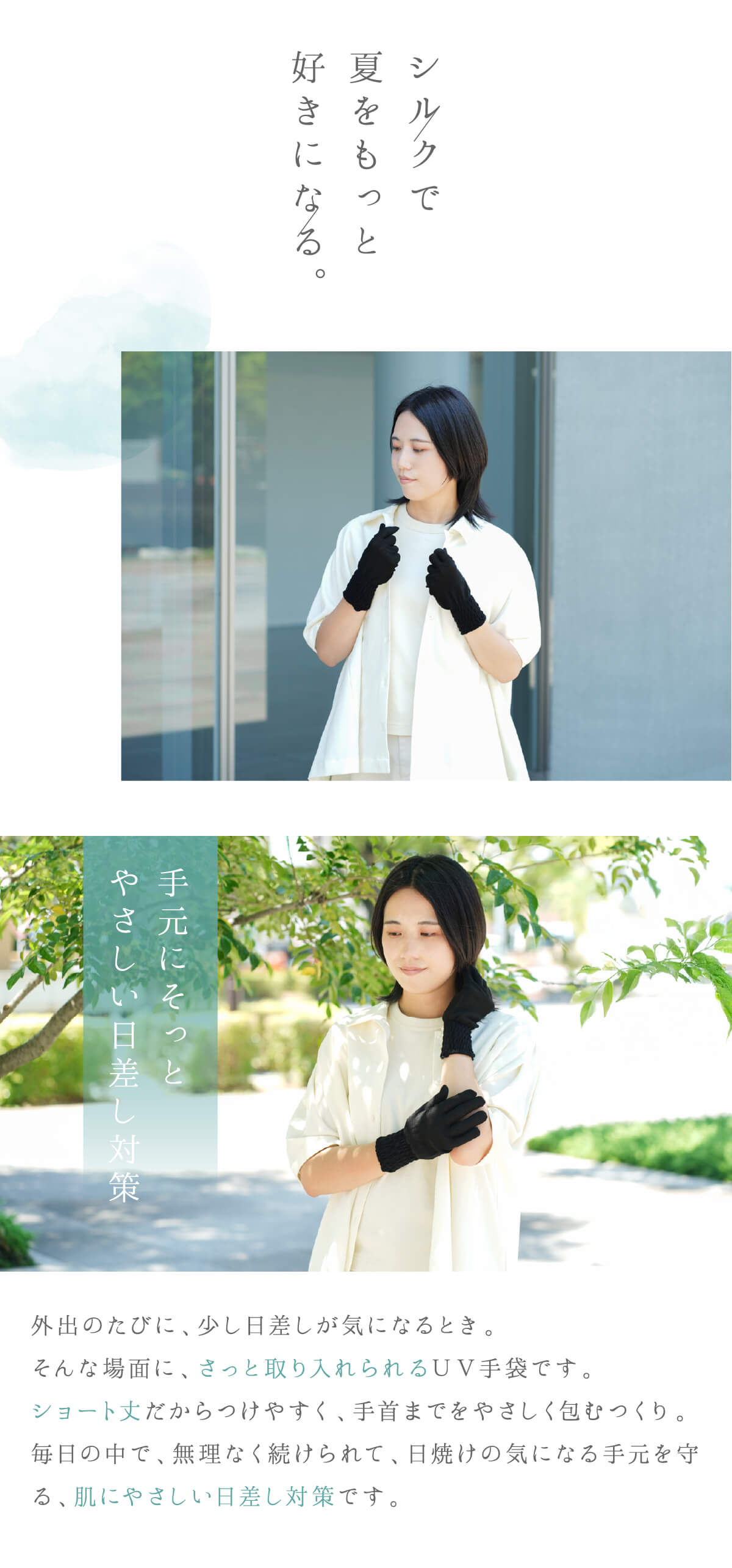 商品名 スマホ対応 シルク混 UV手袋 ショート丈