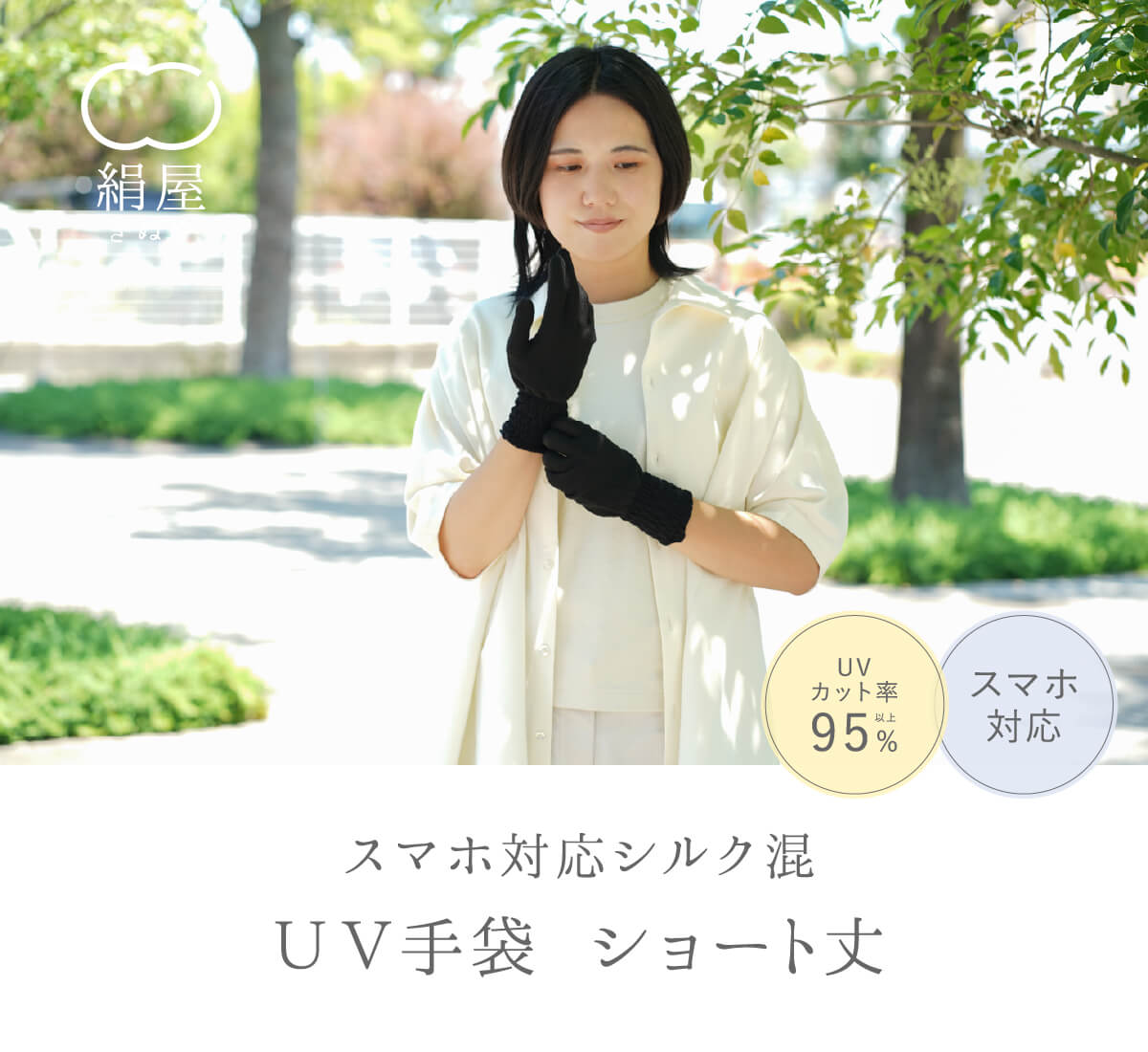 絹屋 スマホ対応 シルク混 UV手袋 ショート丈