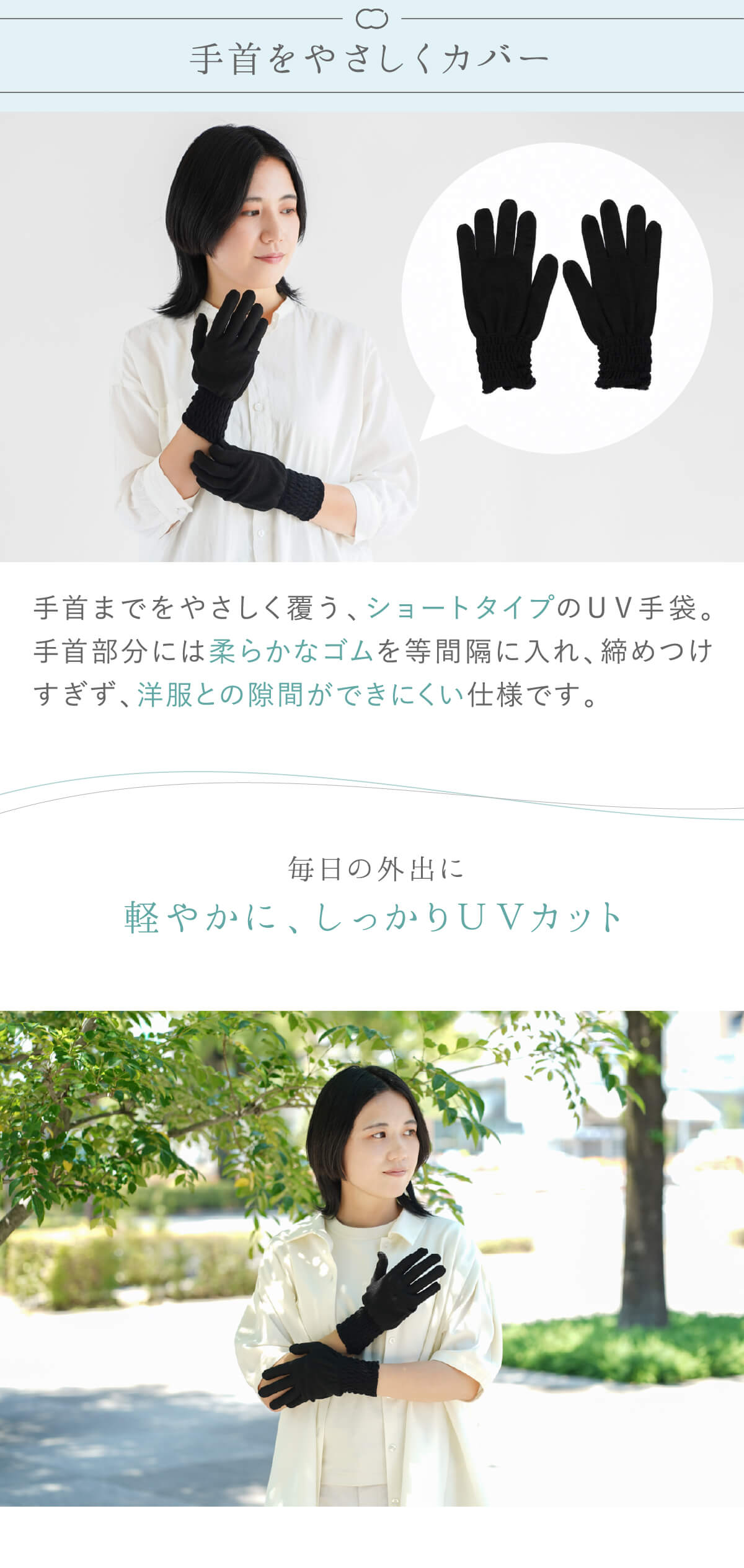 指先から手首までを覆うショートタイプで、
