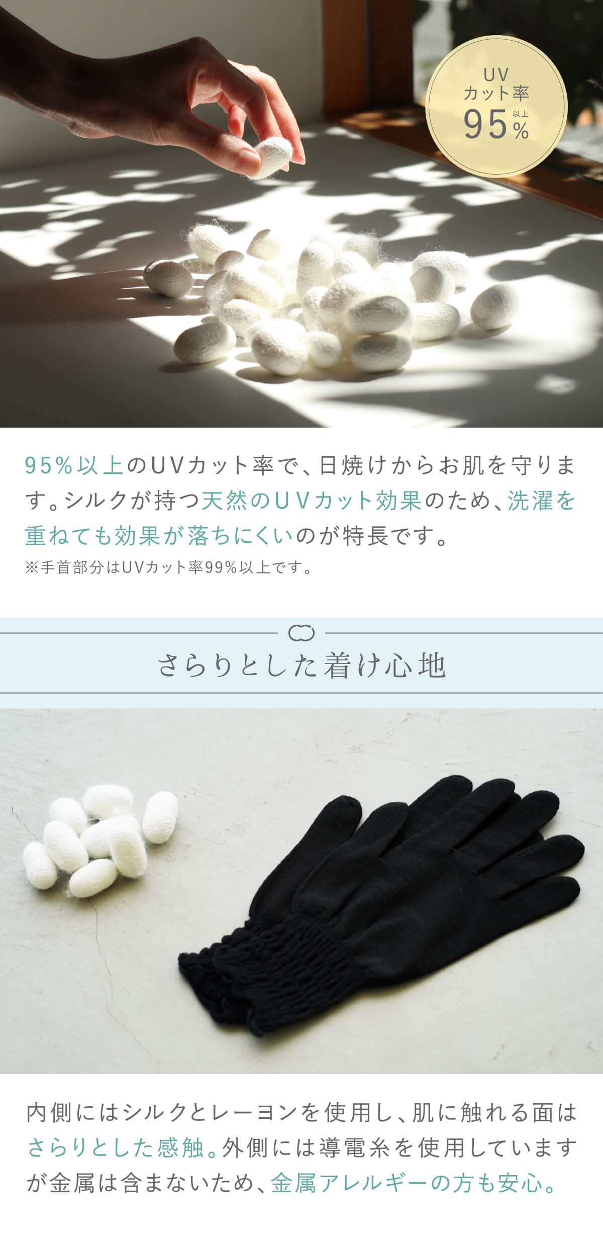 ※手首部分:UVカット率99%以上
