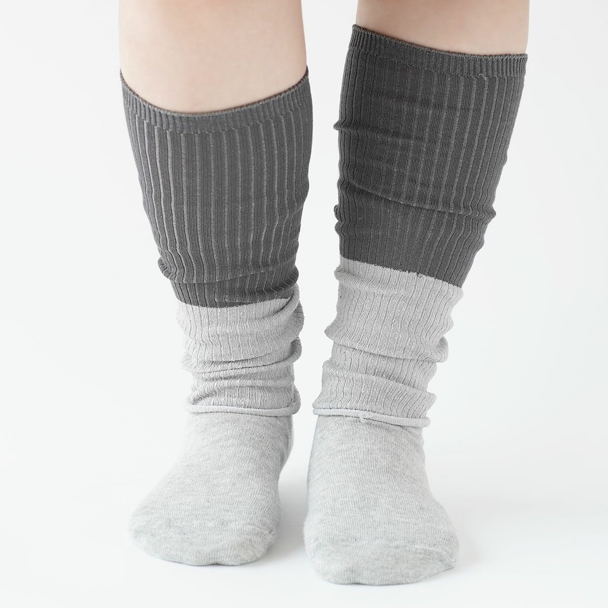 シルクと綿のレッグウォーマー バイカラー