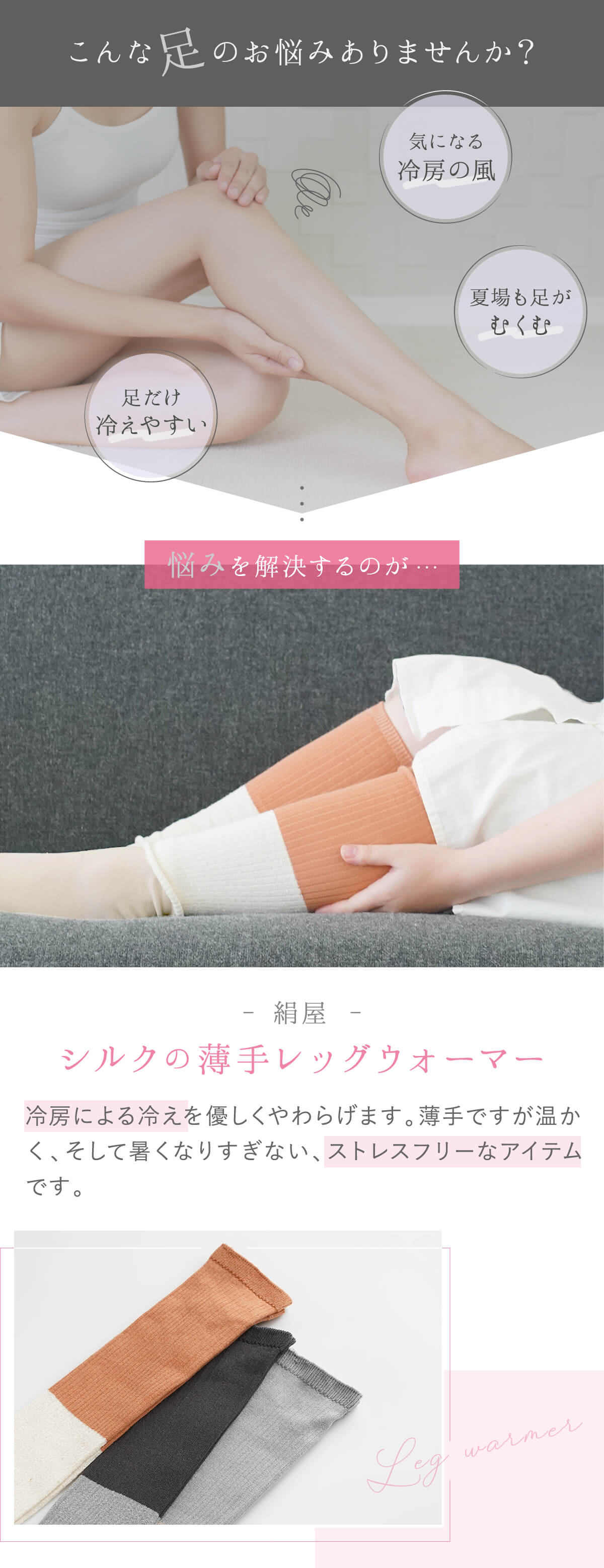 内側シルクのレッグウォーマーとしても