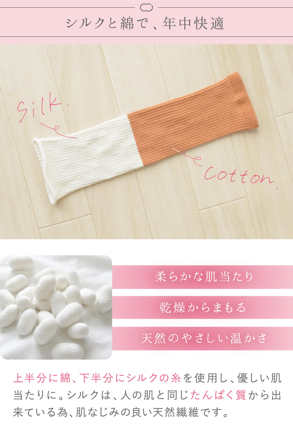 組成 綿42%、シルク40%、ナイロン17%、ポリウレタン1%