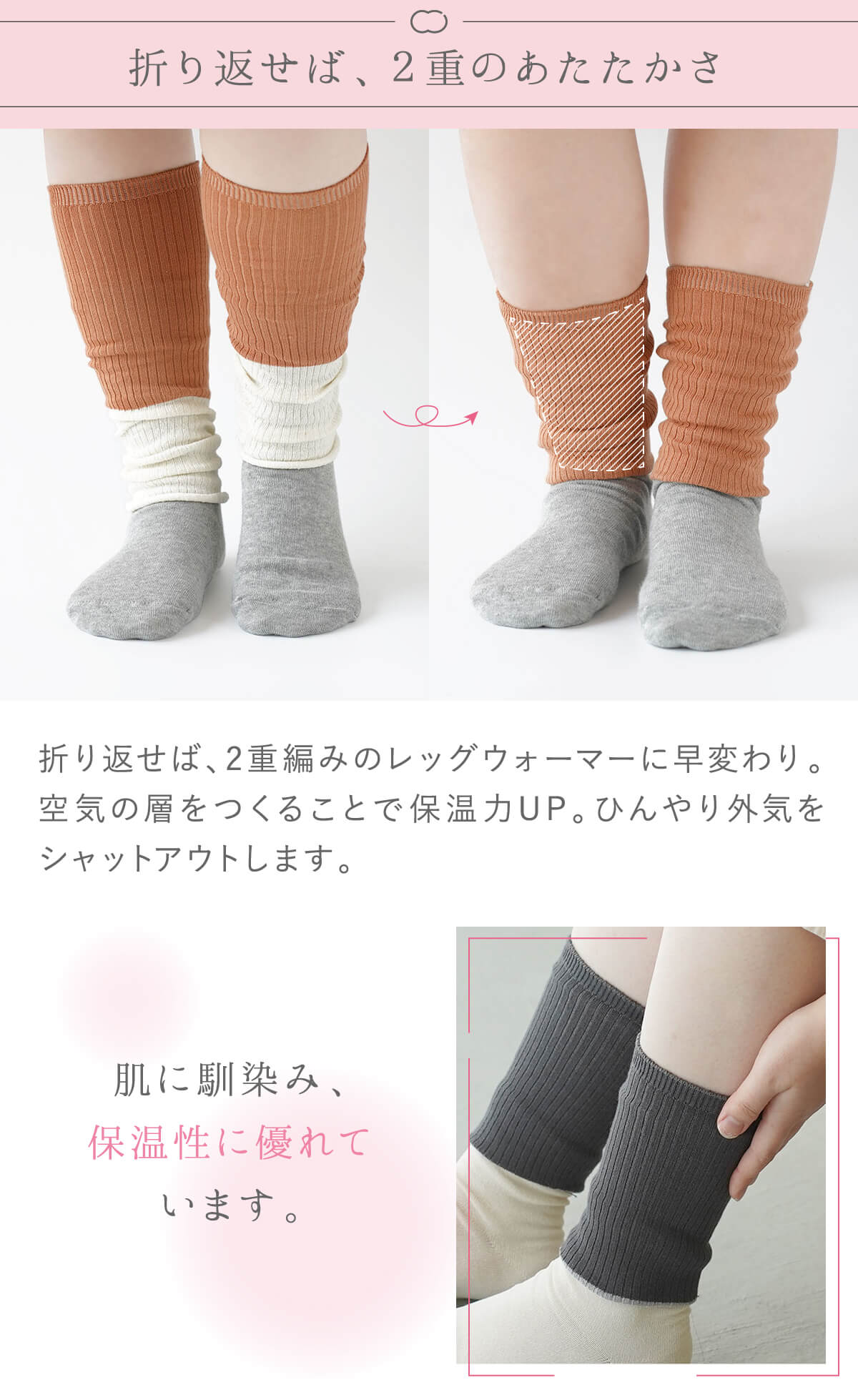天然繊維に包まれる、やさしいレッグウォーマーです。