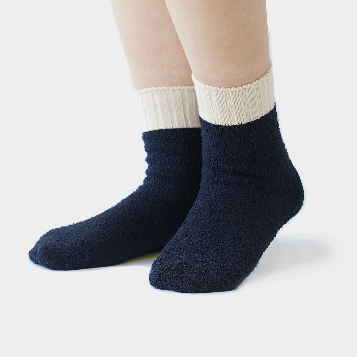内側シルク2重編みウール混もこもこ靴下