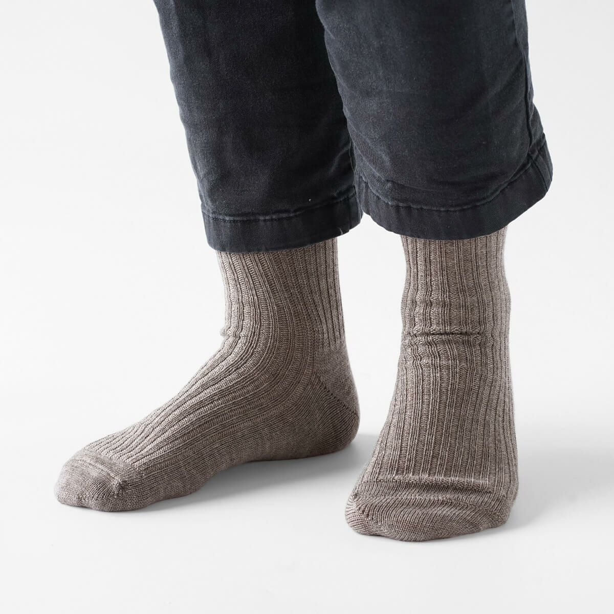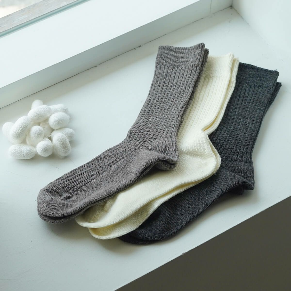 シルクとウールを一緒に編んだ、身体に優しい靴下。