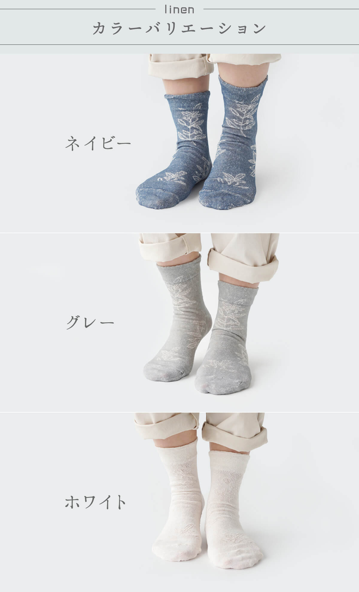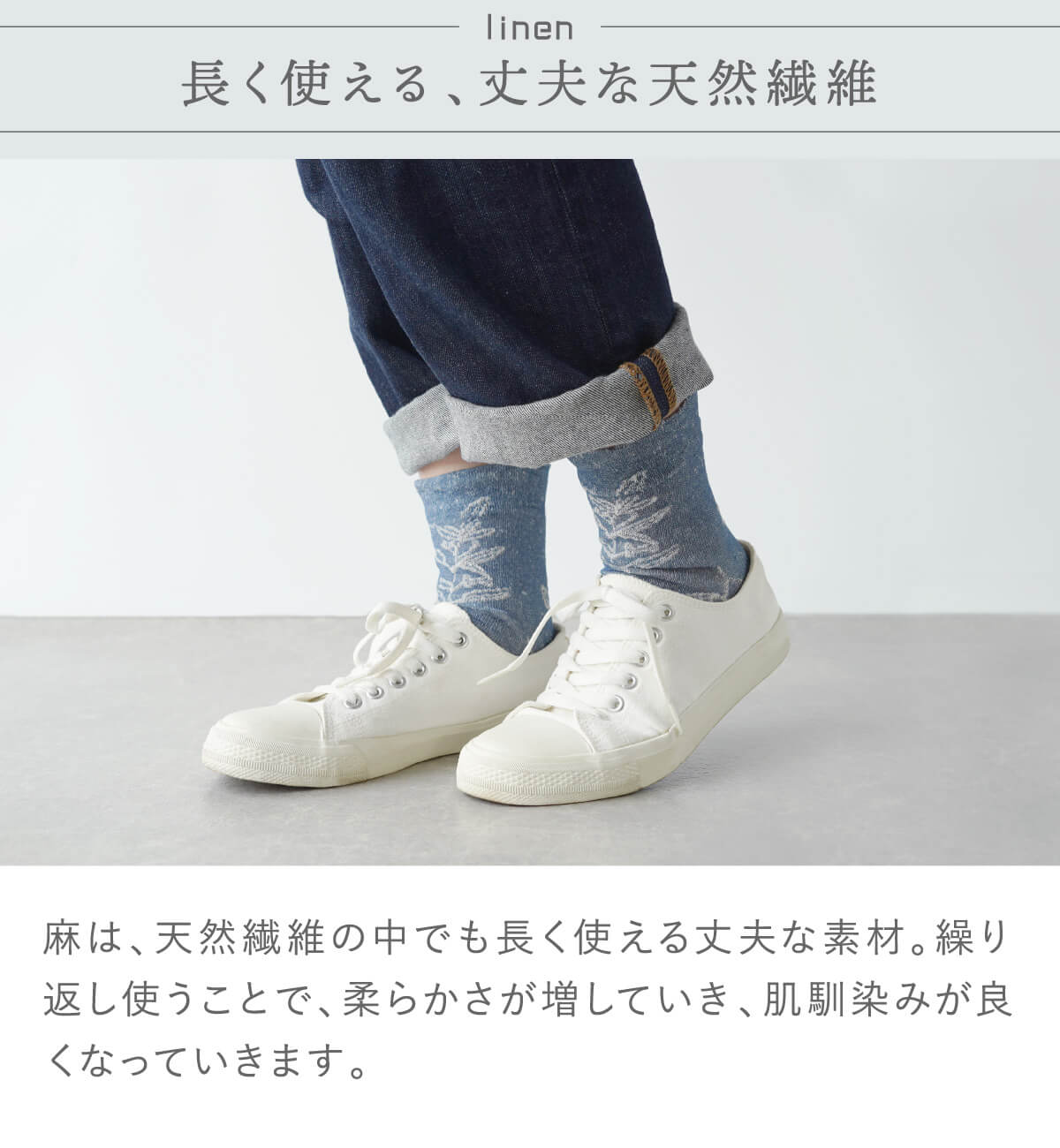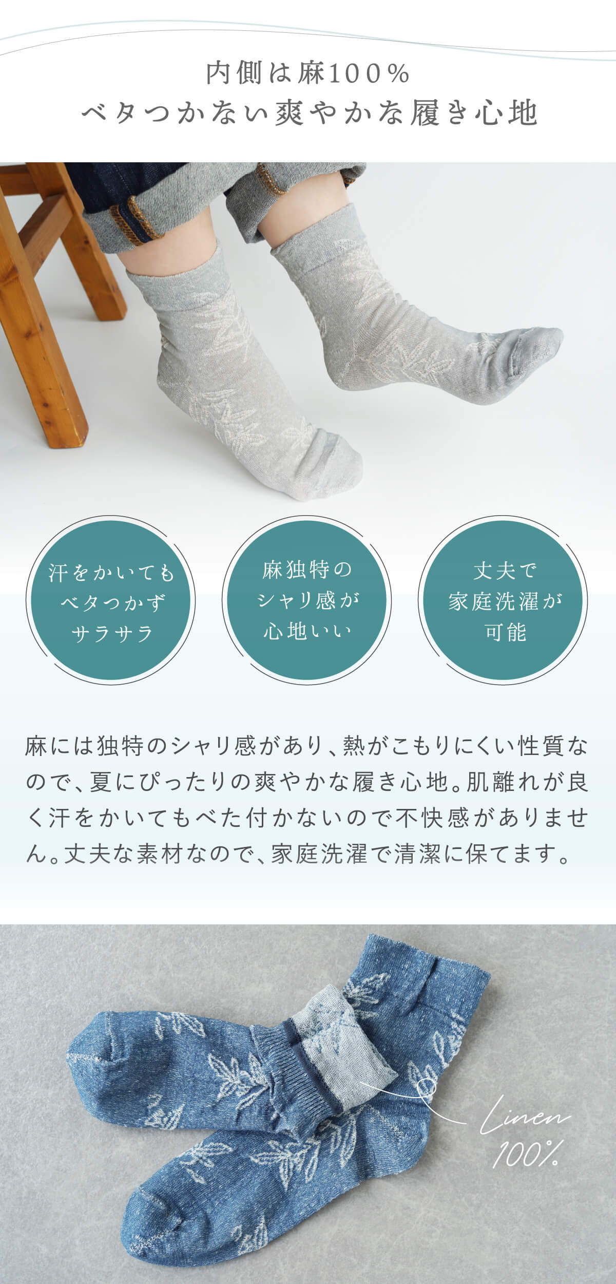 linen 汗でベタつきにくい 麻の靴下 植物柄