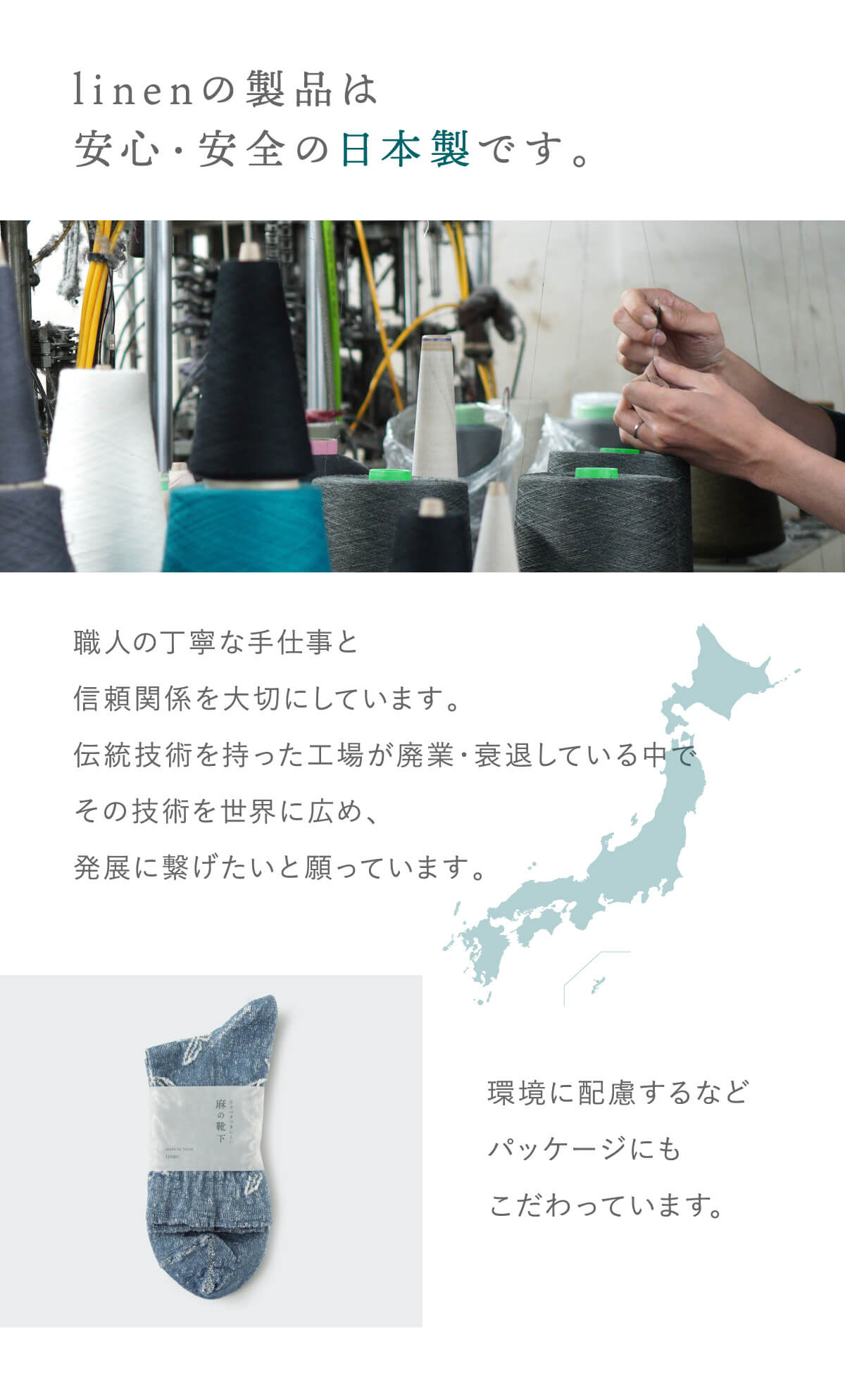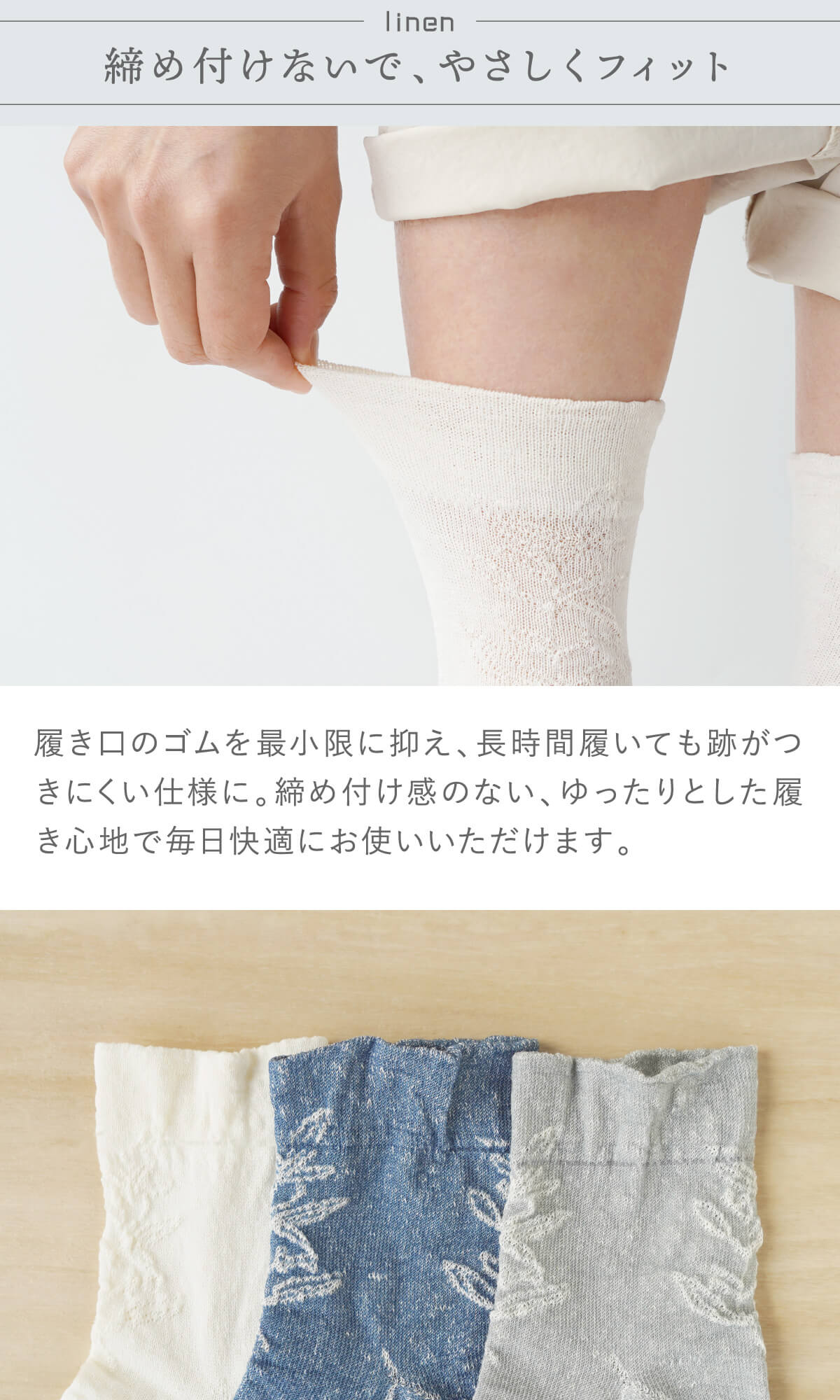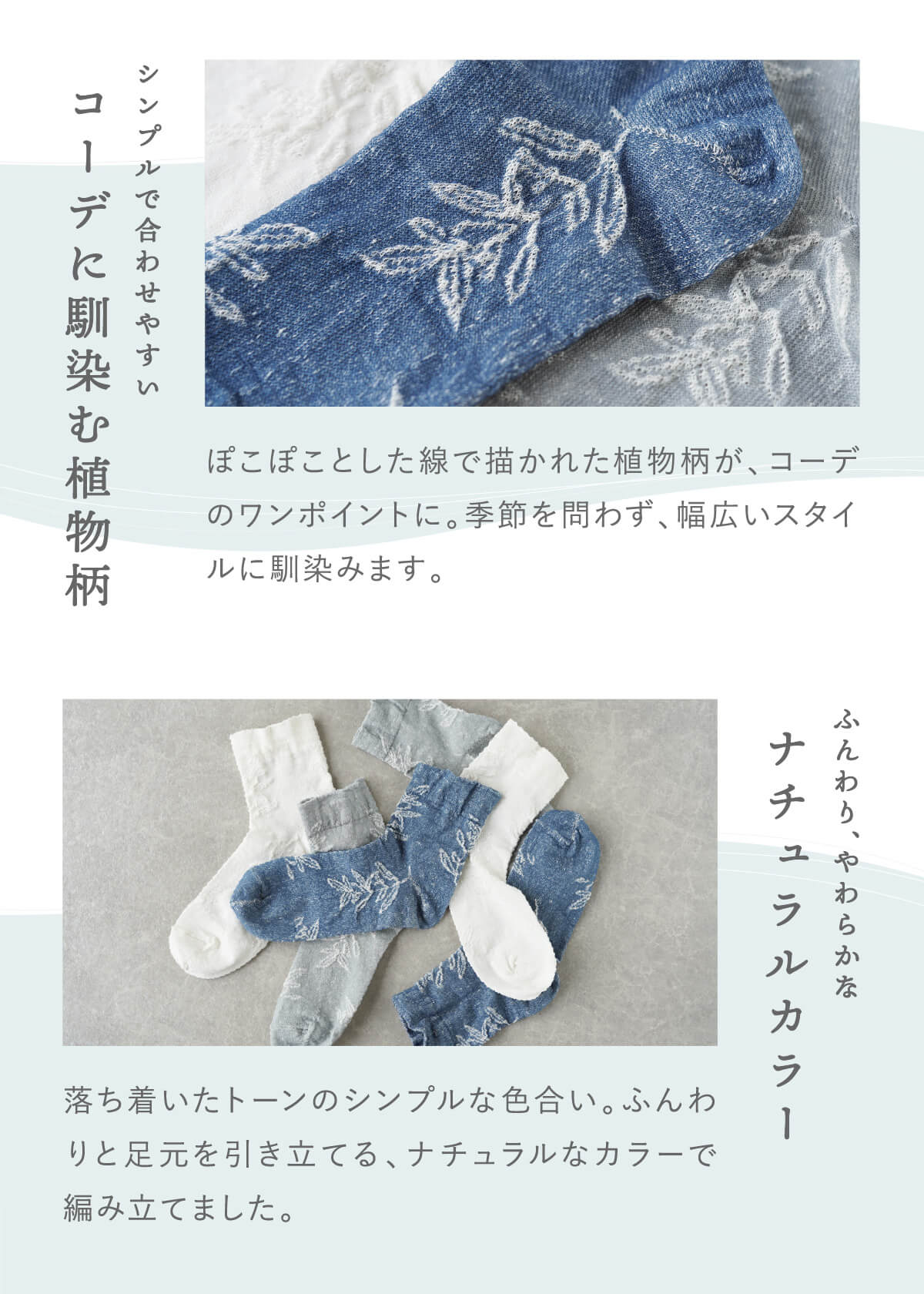 linen 汗でベタつきにくい 麻の靴下 植物柄