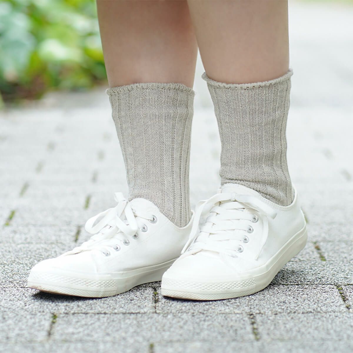 絹屋 内側シルク2重編み靴下 綿 大きめサイズ